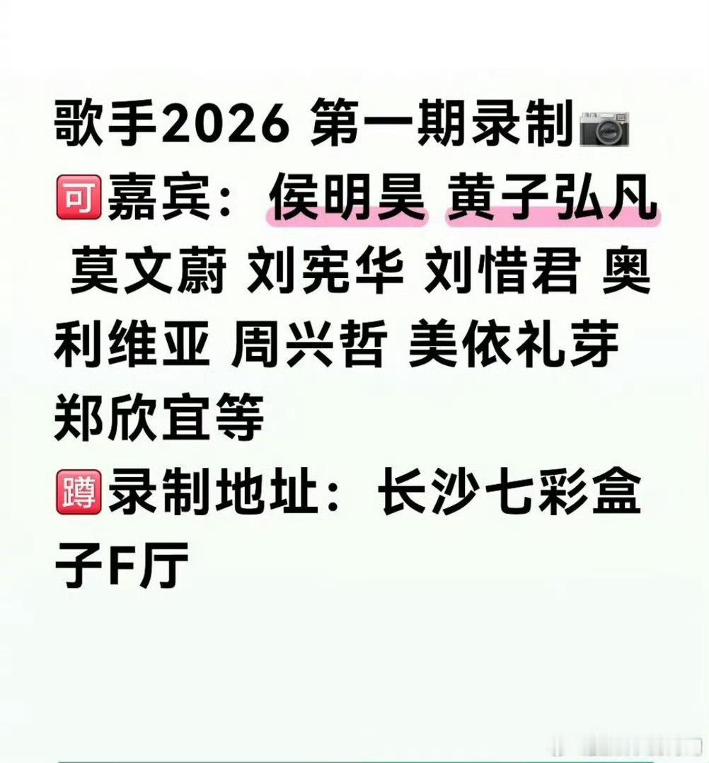歌手2026网传首发阵容名单曝歌手2026首发阵容名单 网传名单引发粉丝狂欢,多位期待已久的歌手现身,舞台表现力与唱功双在线,坐等开播。