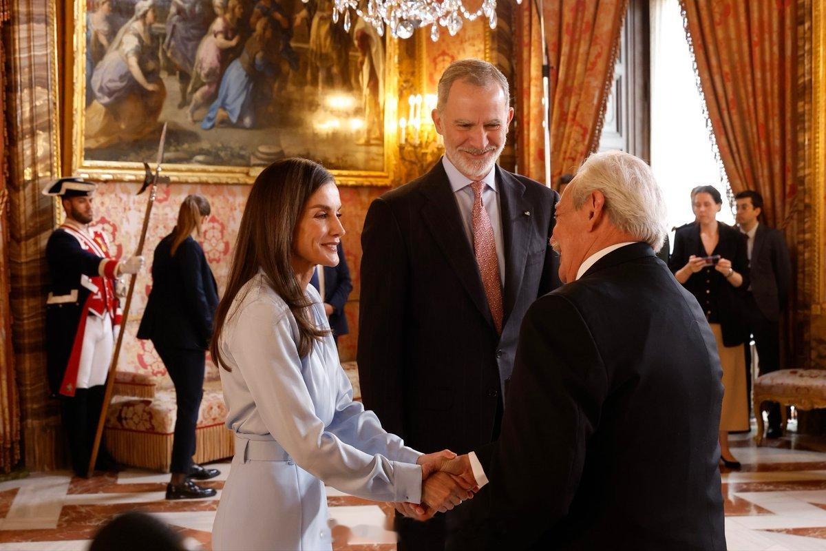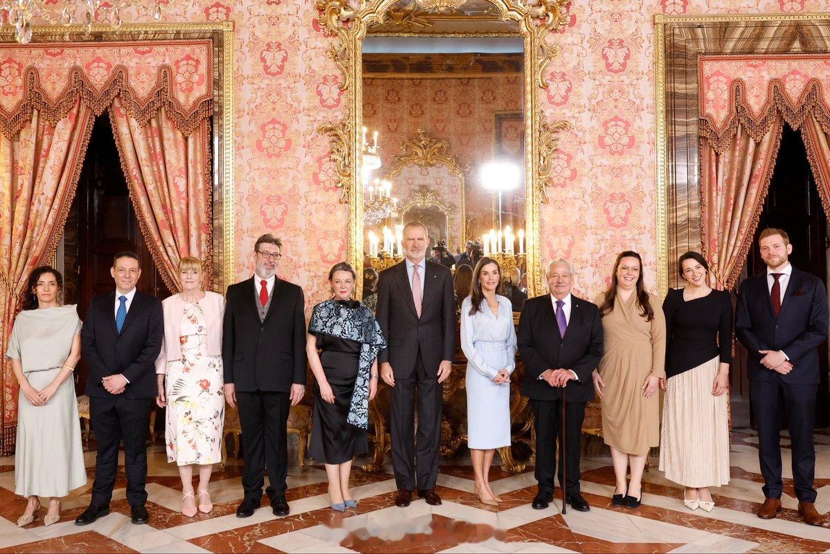 4.22 西班牙国王菲利普六世和王后莱蒂齐亚出席接待午宴,小莱全套来自hugo
