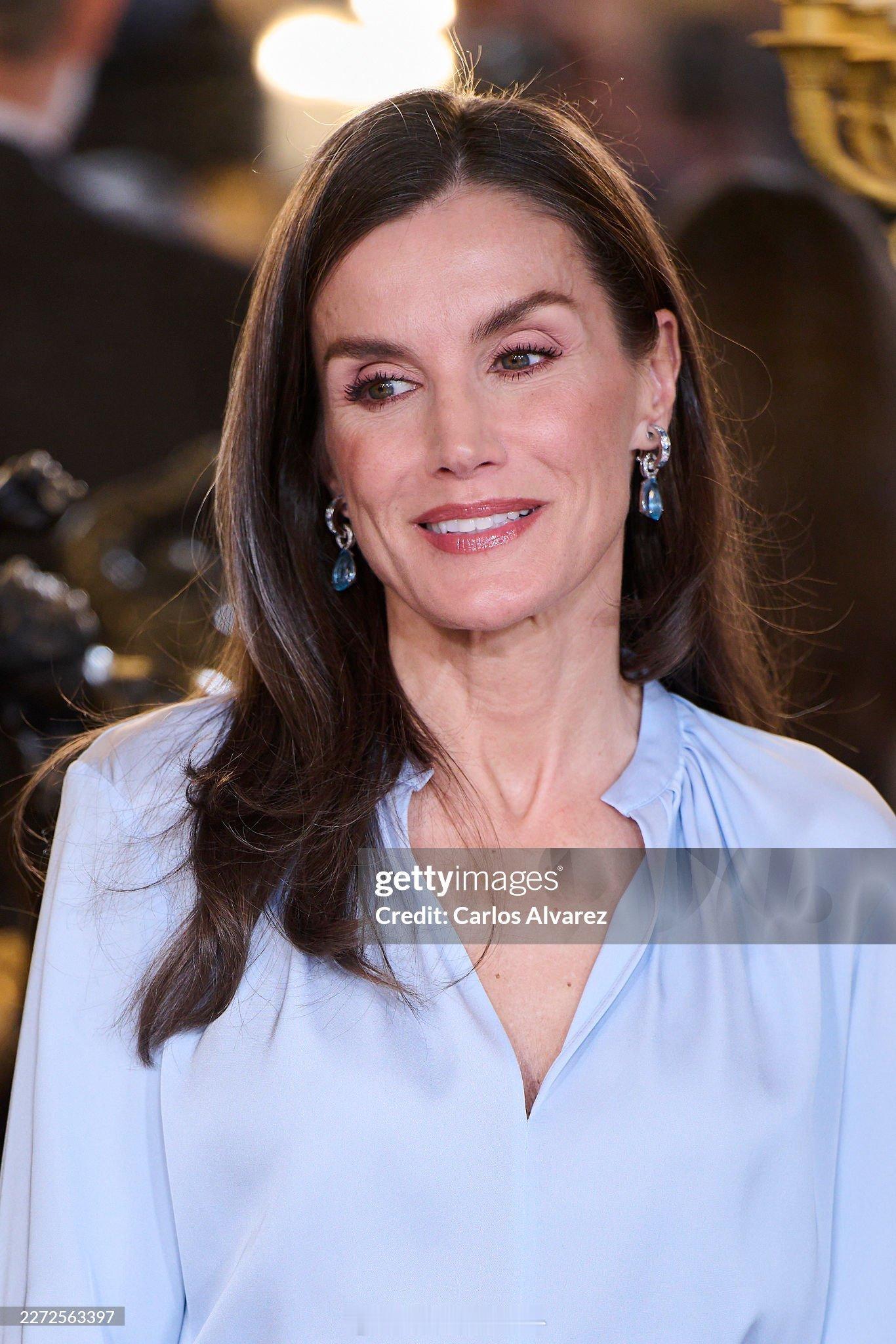 4.22 西班牙国王菲利普六世和王后莱蒂齐亚出席接待午宴,小莱全套来自hugo boss,这身天蓝色还挺清爽的