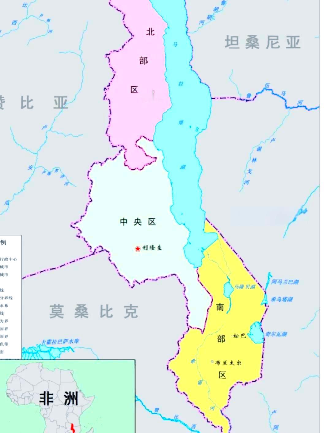 马拉维湖地处非洲的东南部,东非大裂谷的南部,是坦桑尼亚(18%)、莫桑比克(5%)、马拉维(77%)三国的界湖。