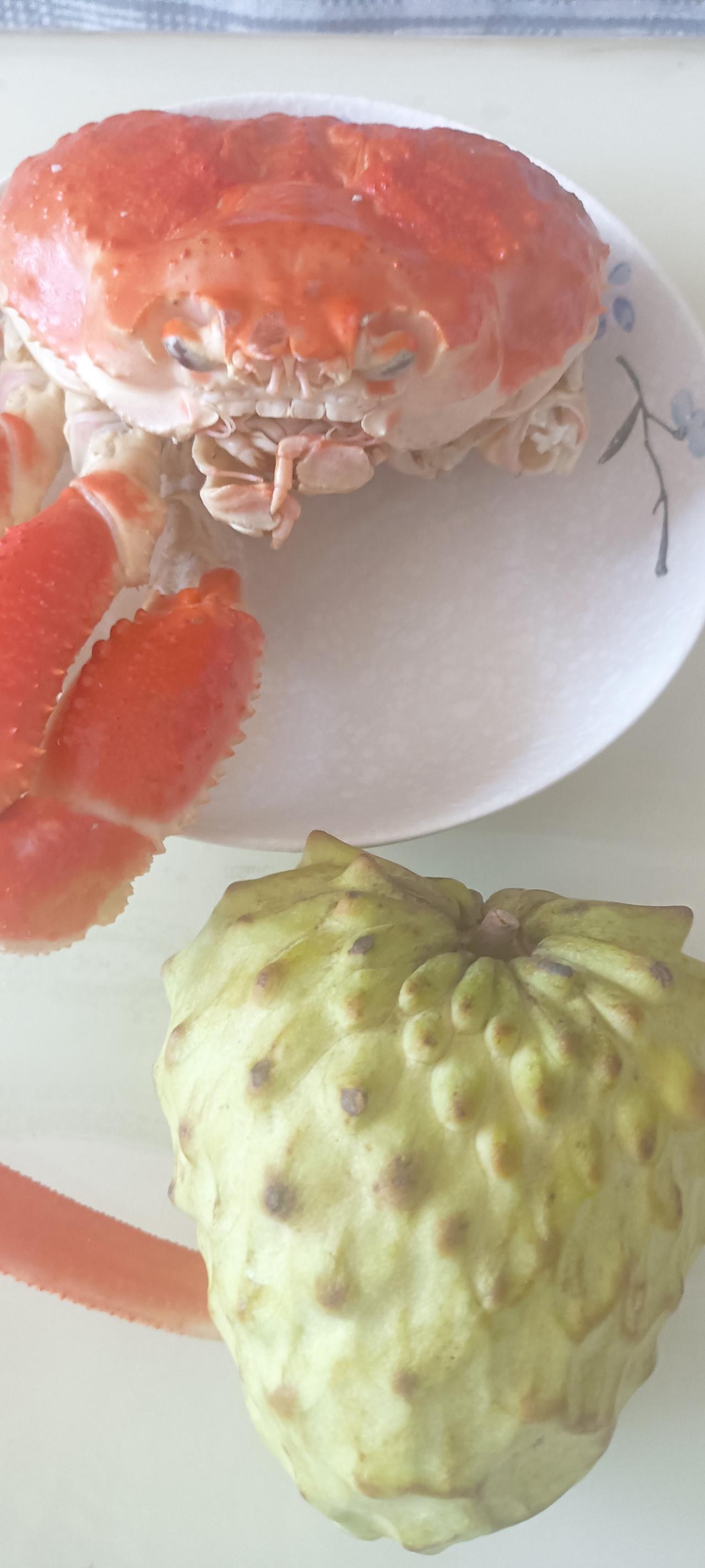 我比较了一下,那个一斤重的释迦果,还没有螃蟹大呢!那个螃蟹大概得三斤左右,有时间我得给好闺蜜回个电话,表示感谢!真是够意思!