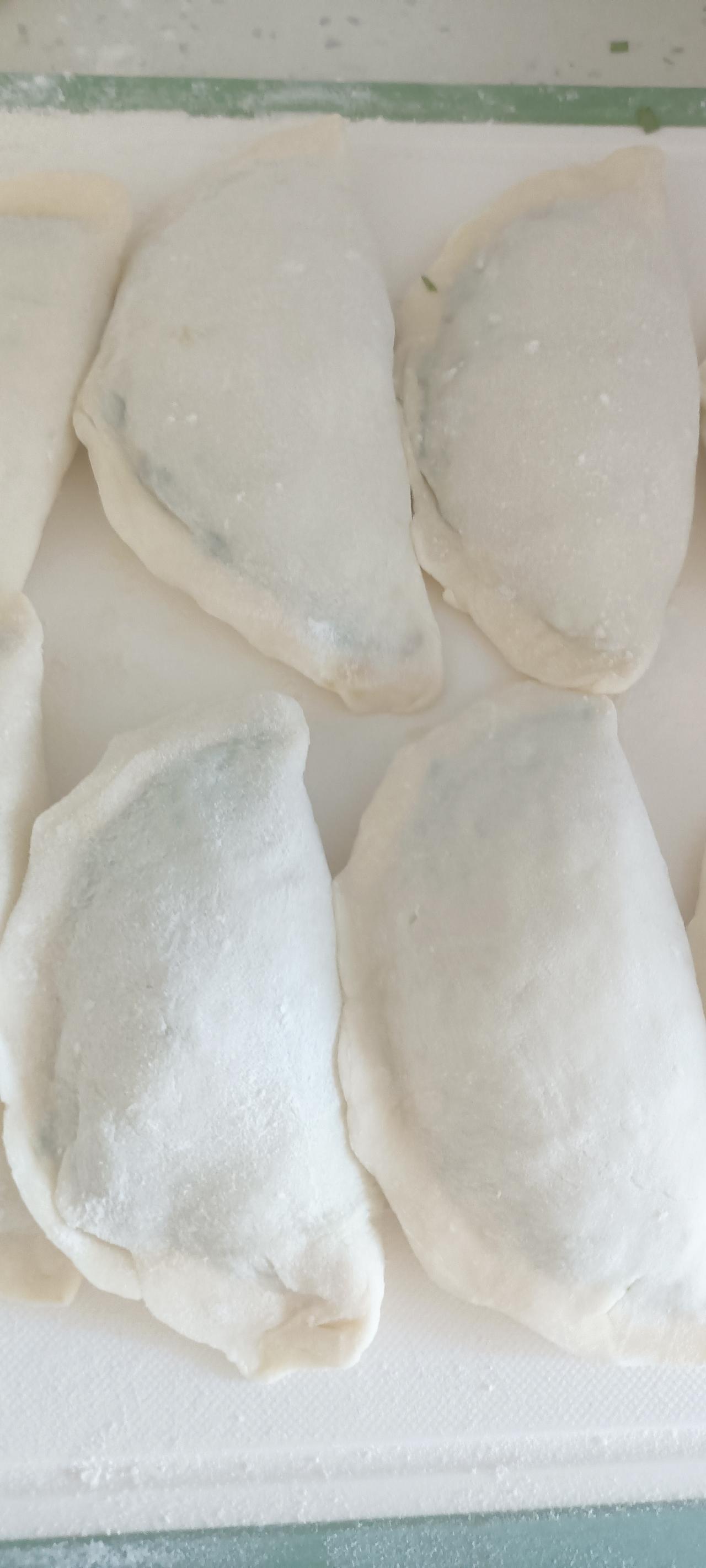 今天中午烙的韭菜盒子,是我家亲戚强子昨天从他妈妈家拿回来的,纯大地头道韭菜,特别短,但特别有韭菜味,比卖的可强多了。