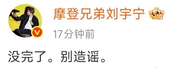 一向淡定的刘宇宁也来辟谣了,六个字风轻云淡否认:没完了。别造谣。