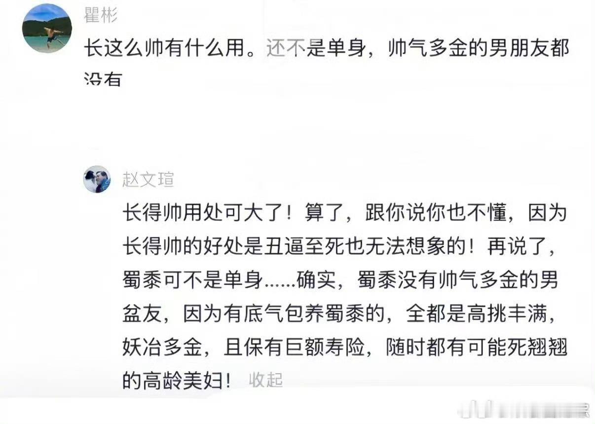 赵文瑄说长得帅的好处丑人是无法想象的好油腻的文案啊薛邵的滤镜稀碎