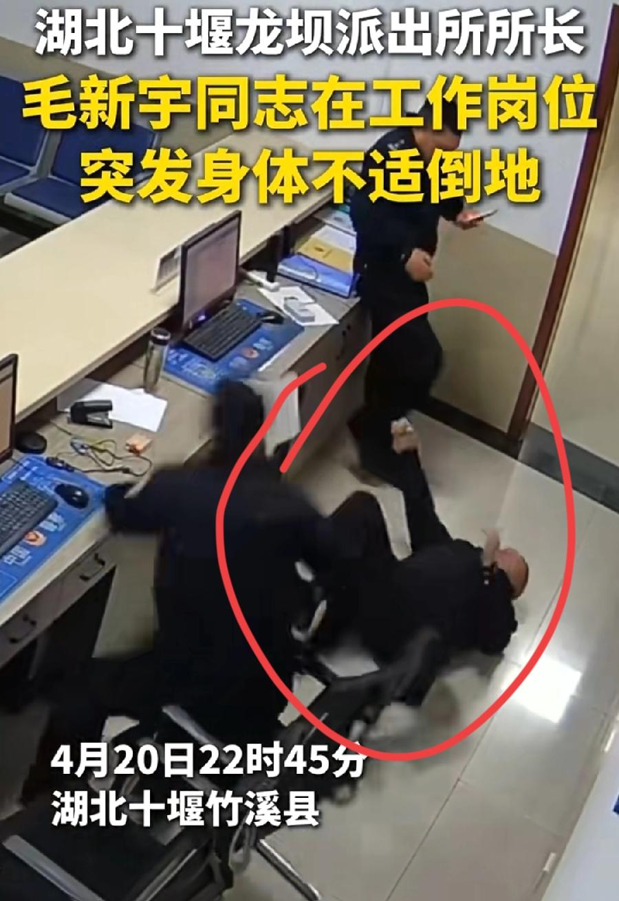 湖北值班牺牲所长,看事发过程,死因还是熬夜,突然心梗或脑梗,事发深夜22点45分,毛所长从电脑座椅上坐起来刚起身,拿茶杯喝水,刚喝几口,弯着腰双手扶着工作台,浑身发抖呼吸急促不停喘气,这是猝死典型症状!