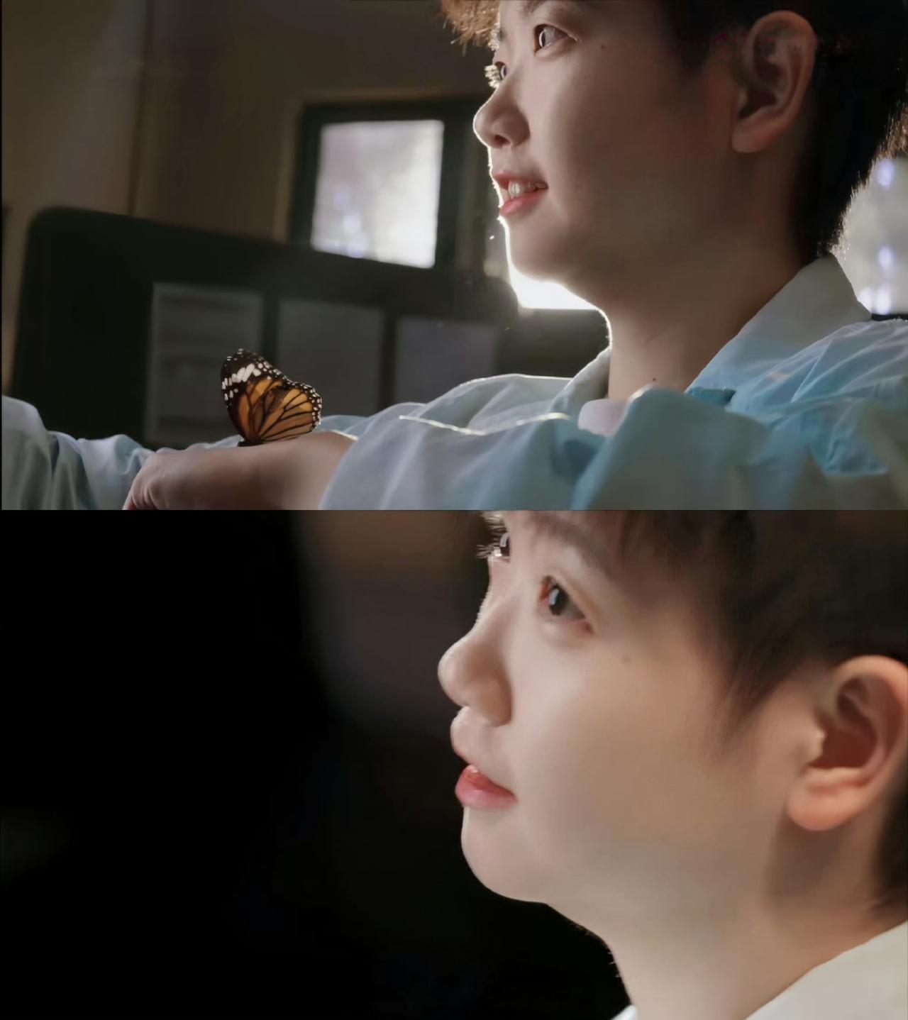 袖口停着的蝴蝶,像是被她的温柔吸引而来,连风都慢了下来。这一刻,没有赛场的喧嚣,只有她和这束光,安静又美好。