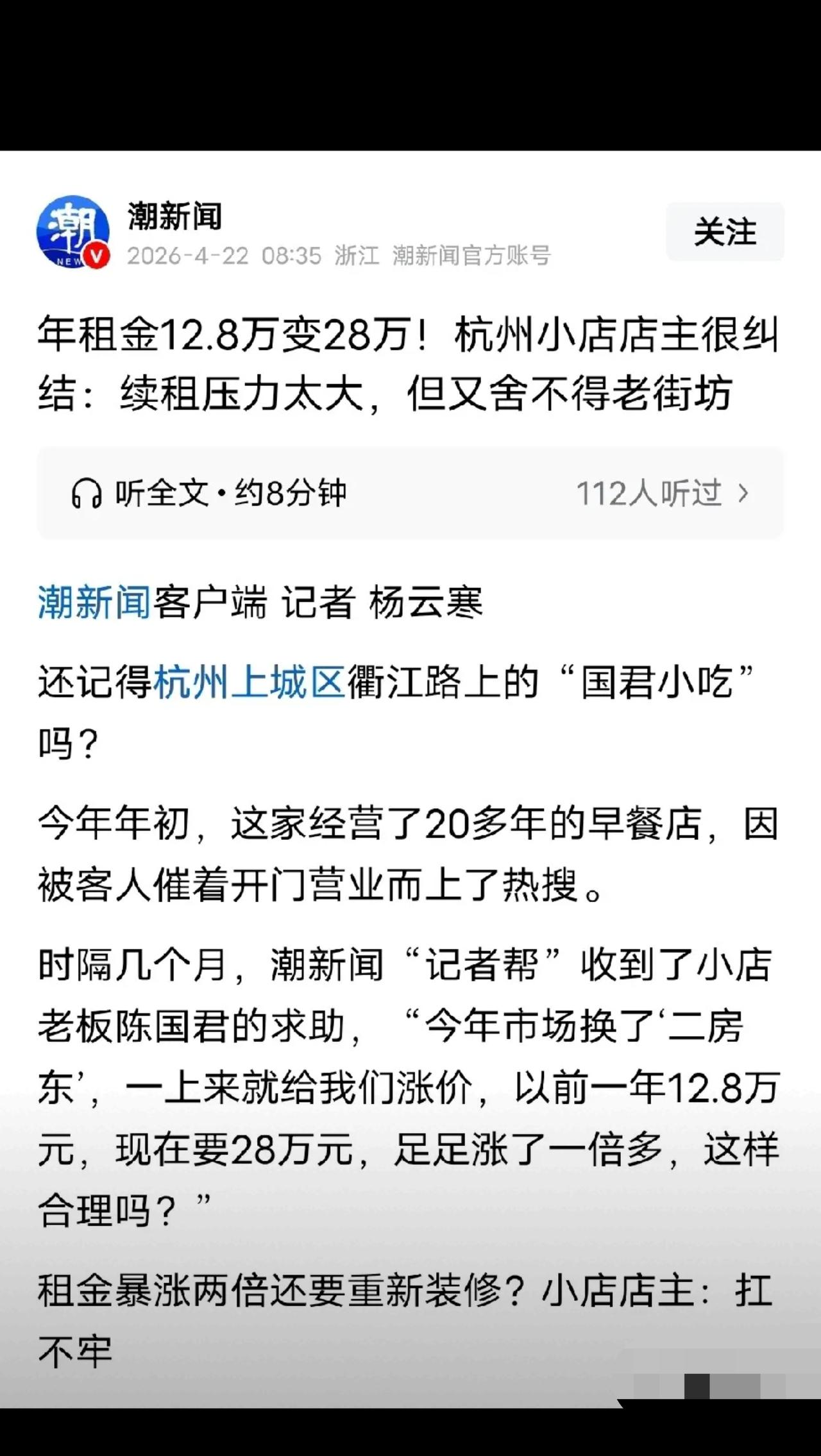 真的希望运营方能放下暴利执念,拿出协商的诚意,合理调整租金,留住这家满是回忆的早餐店,留住这份陪伴杭州人多年的温暖。