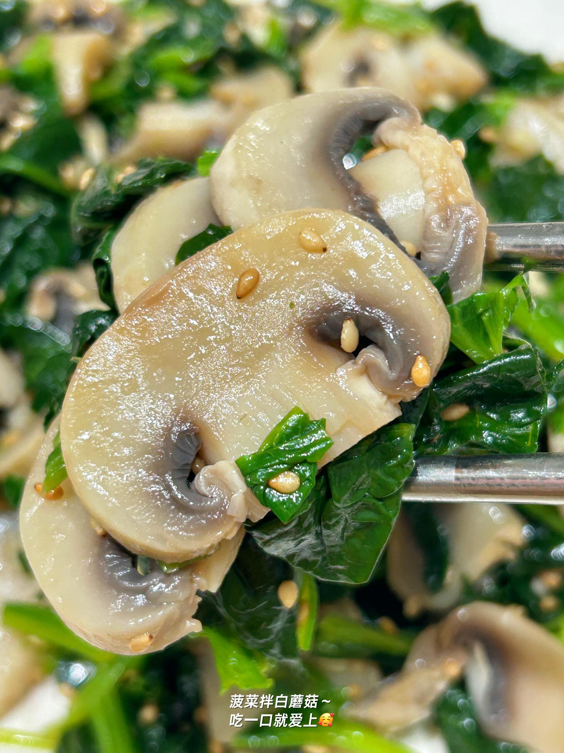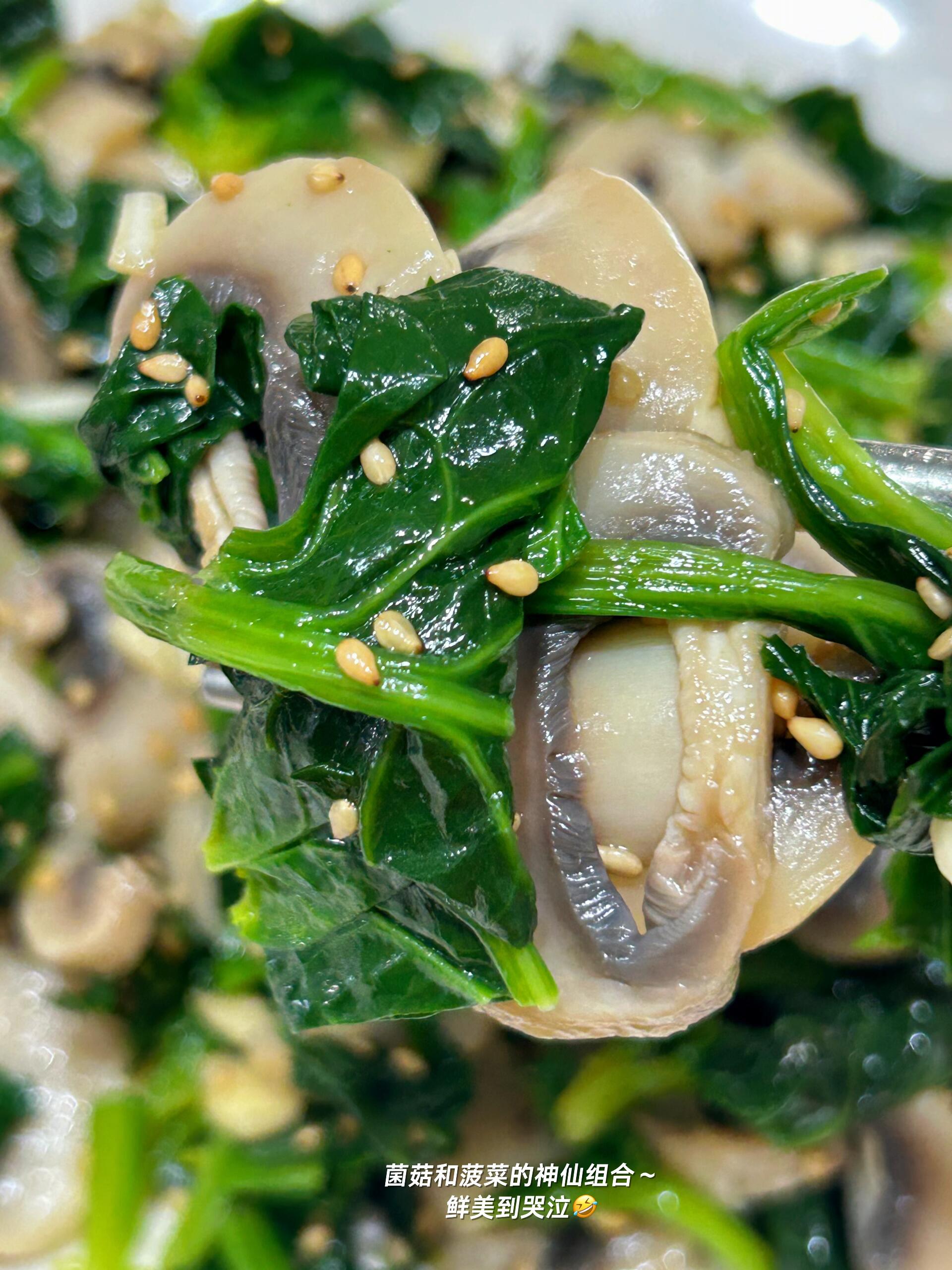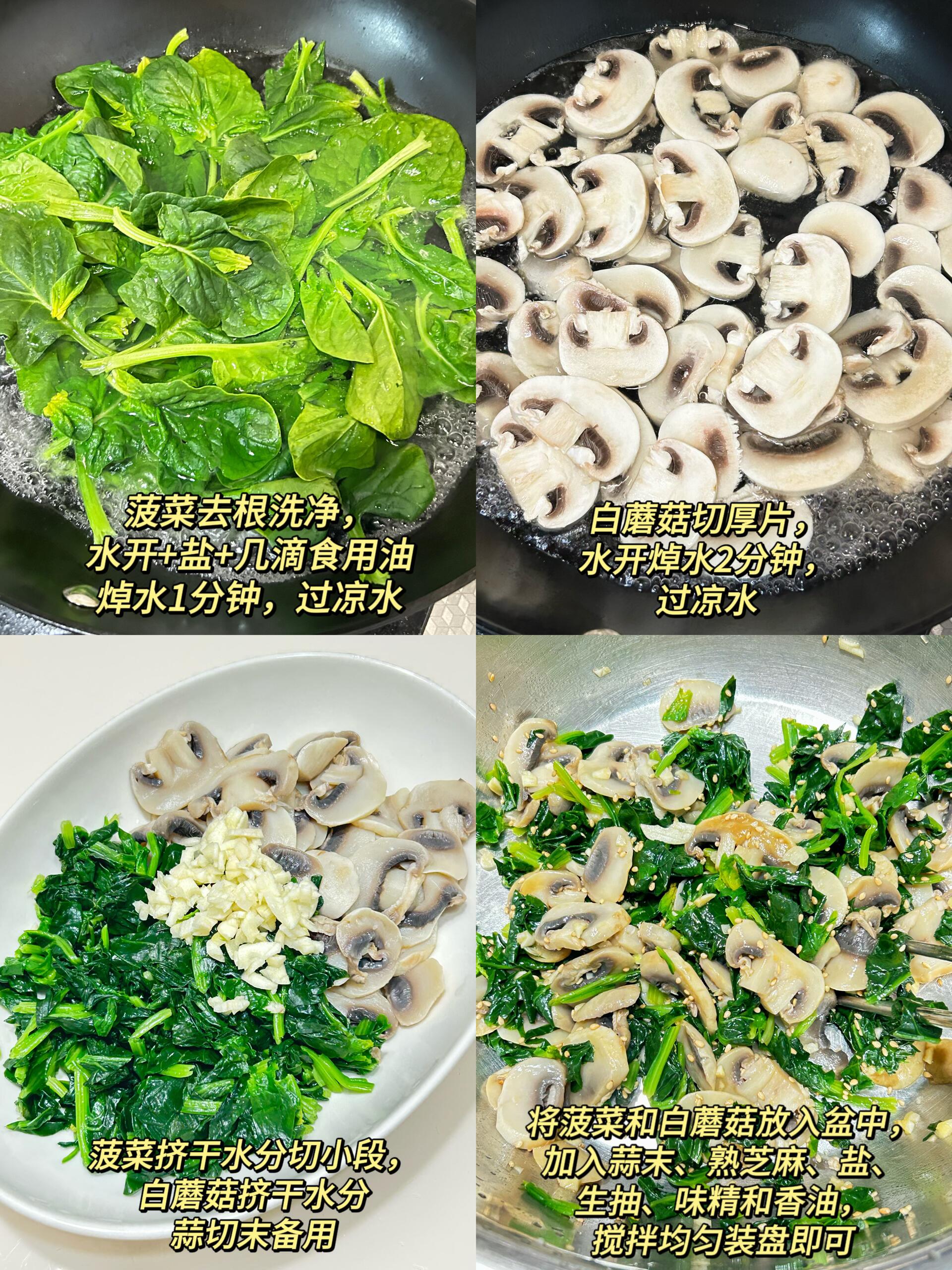 减脂期必吃!清爽菠菜拌白蘑菇✨