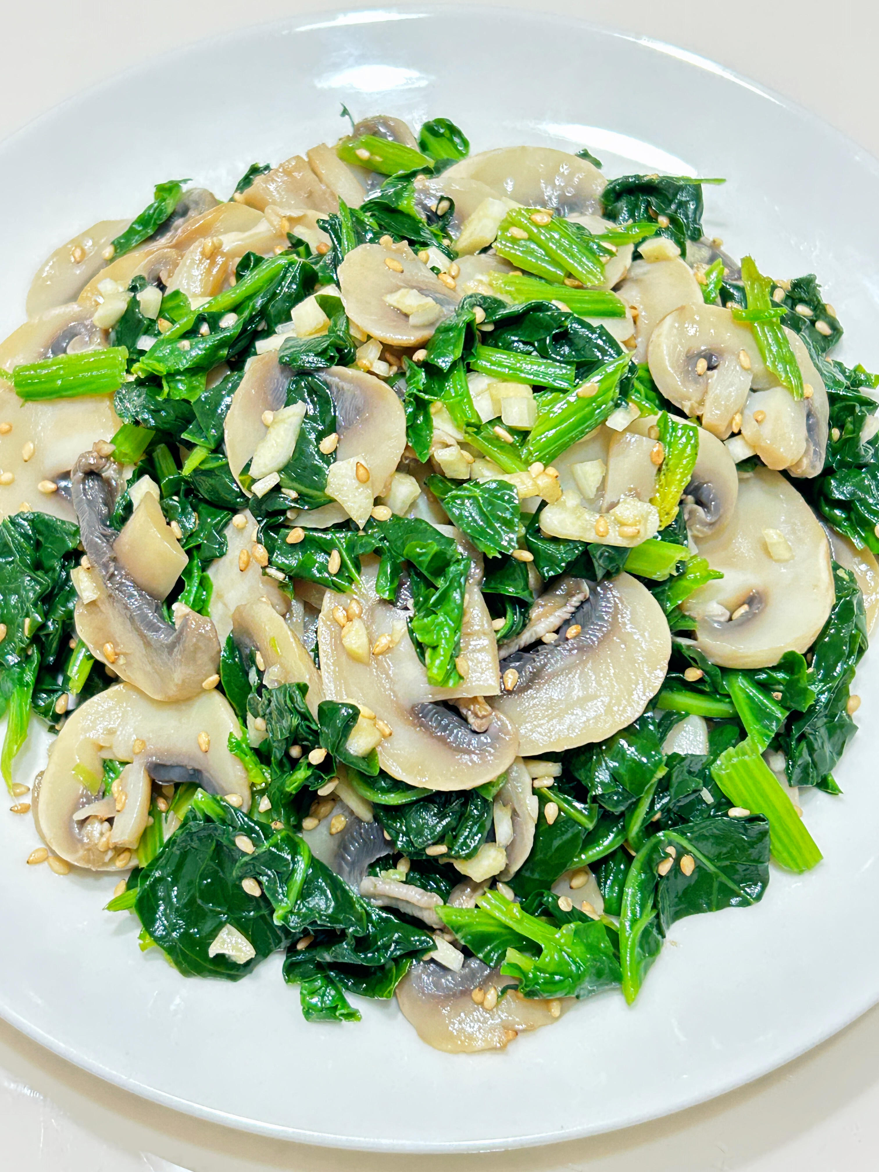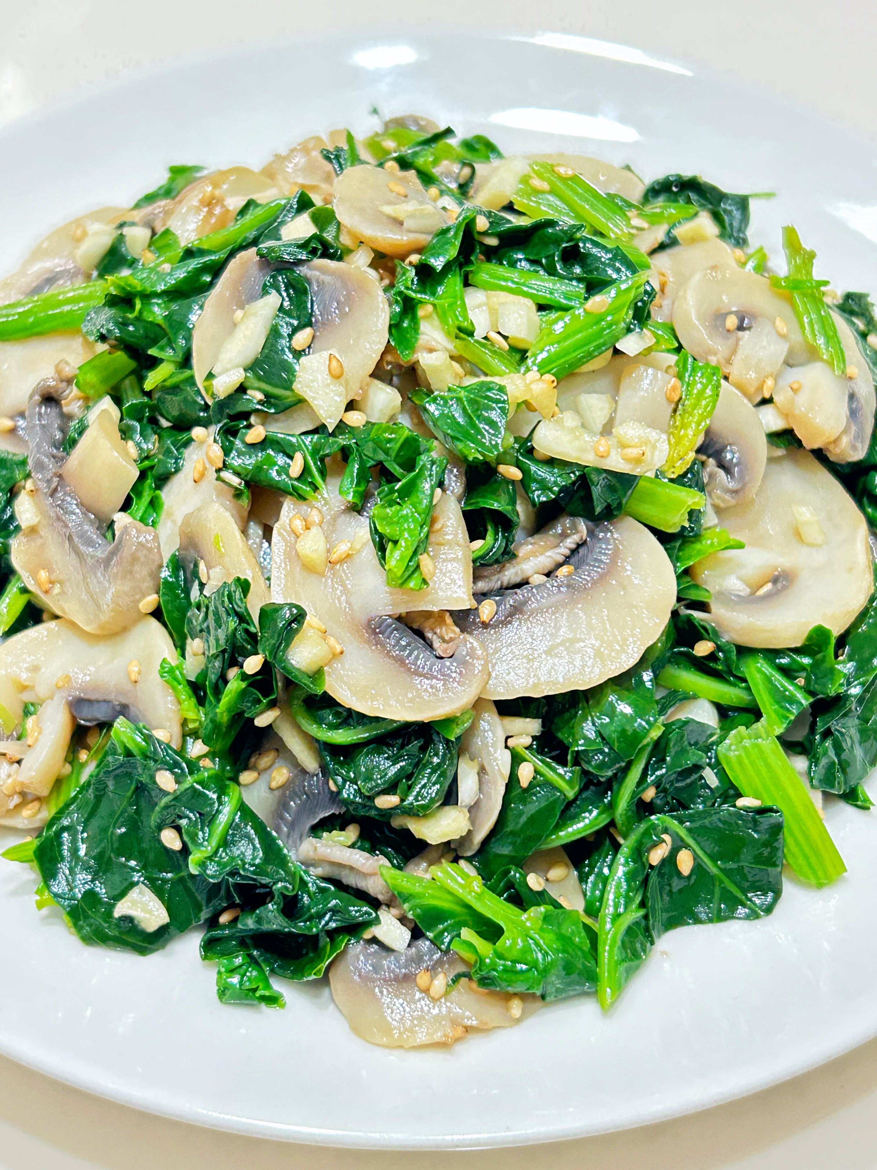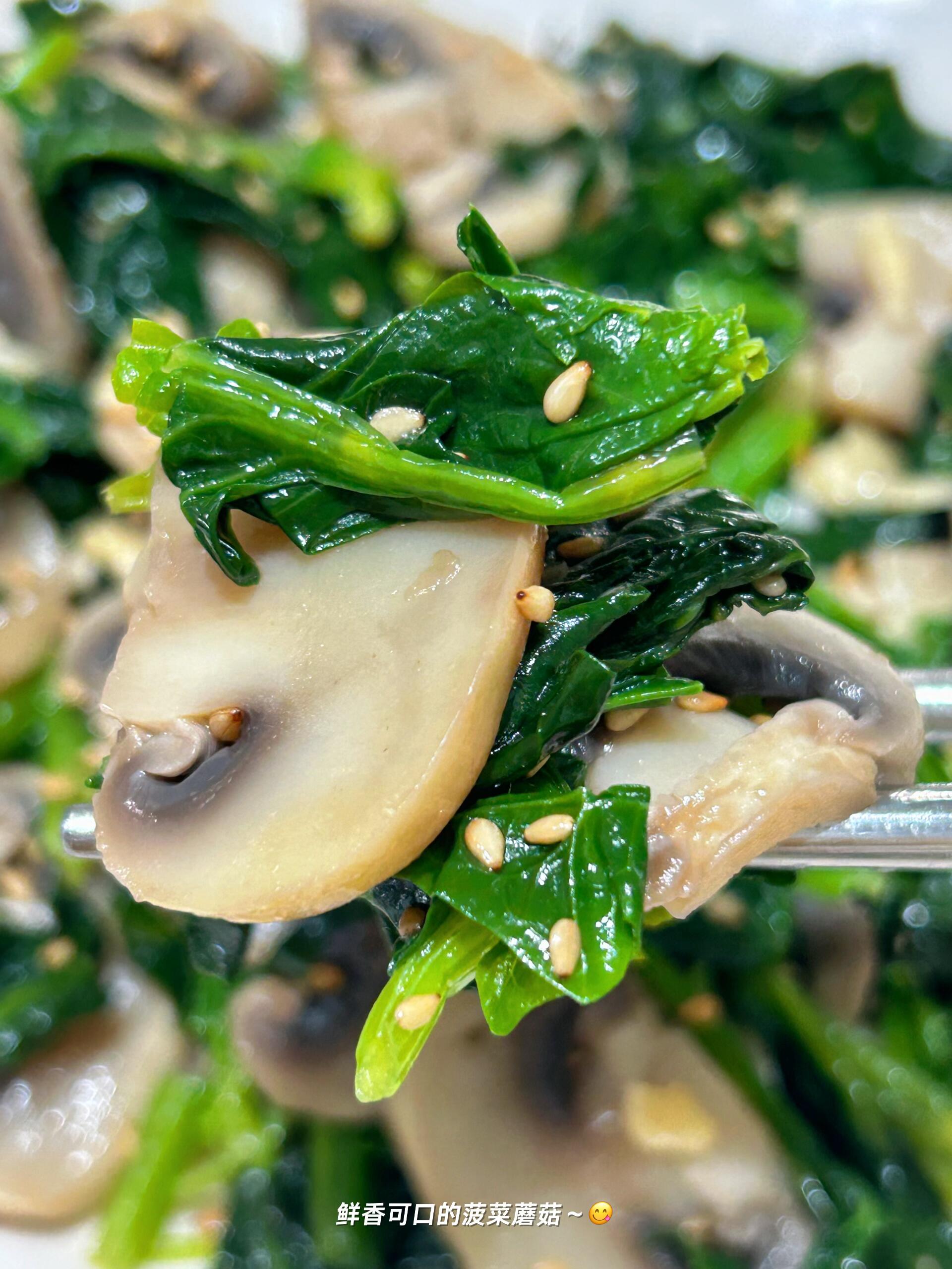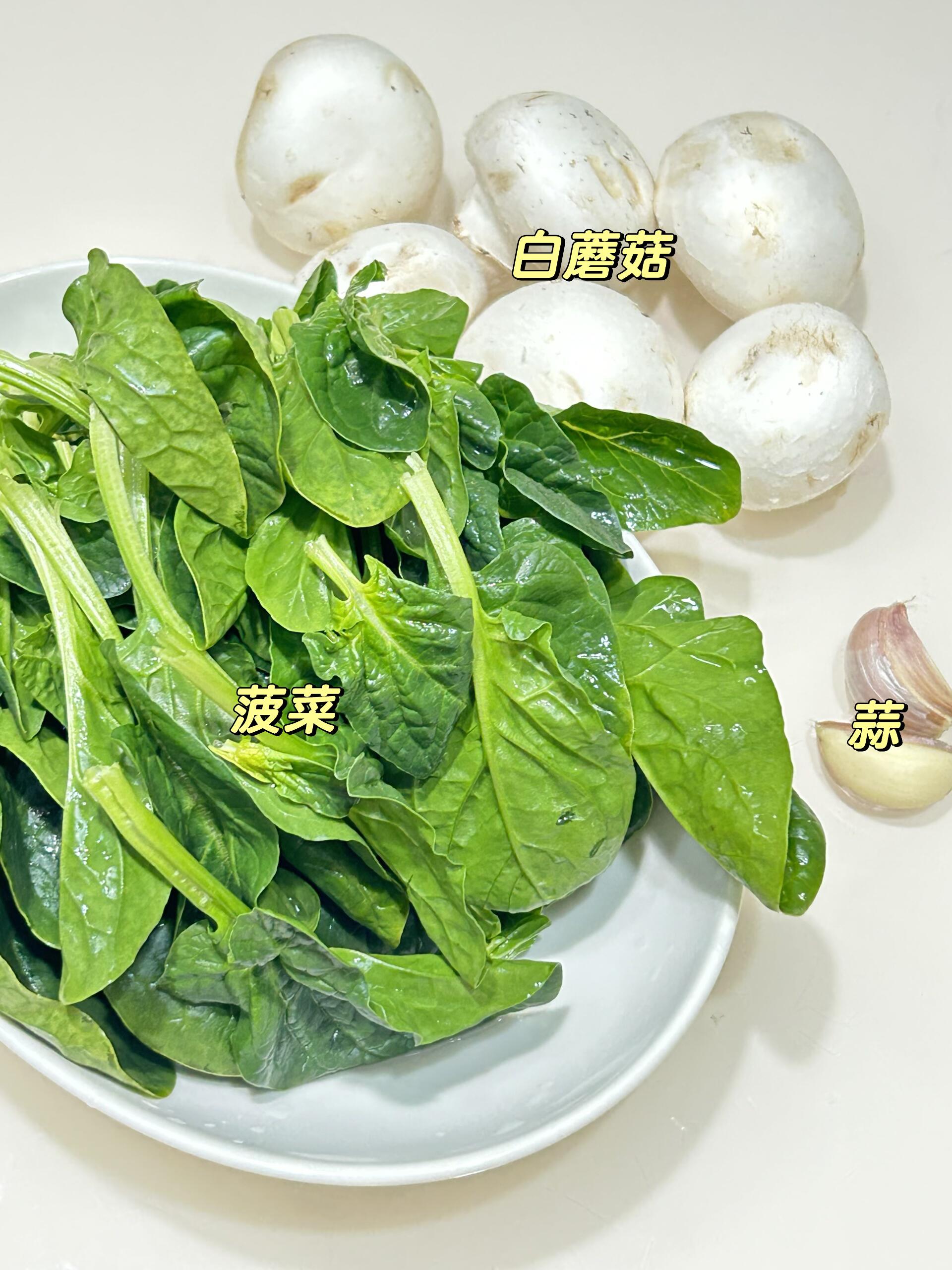 减脂期必吃!清爽菠菜拌白蘑菇✨
