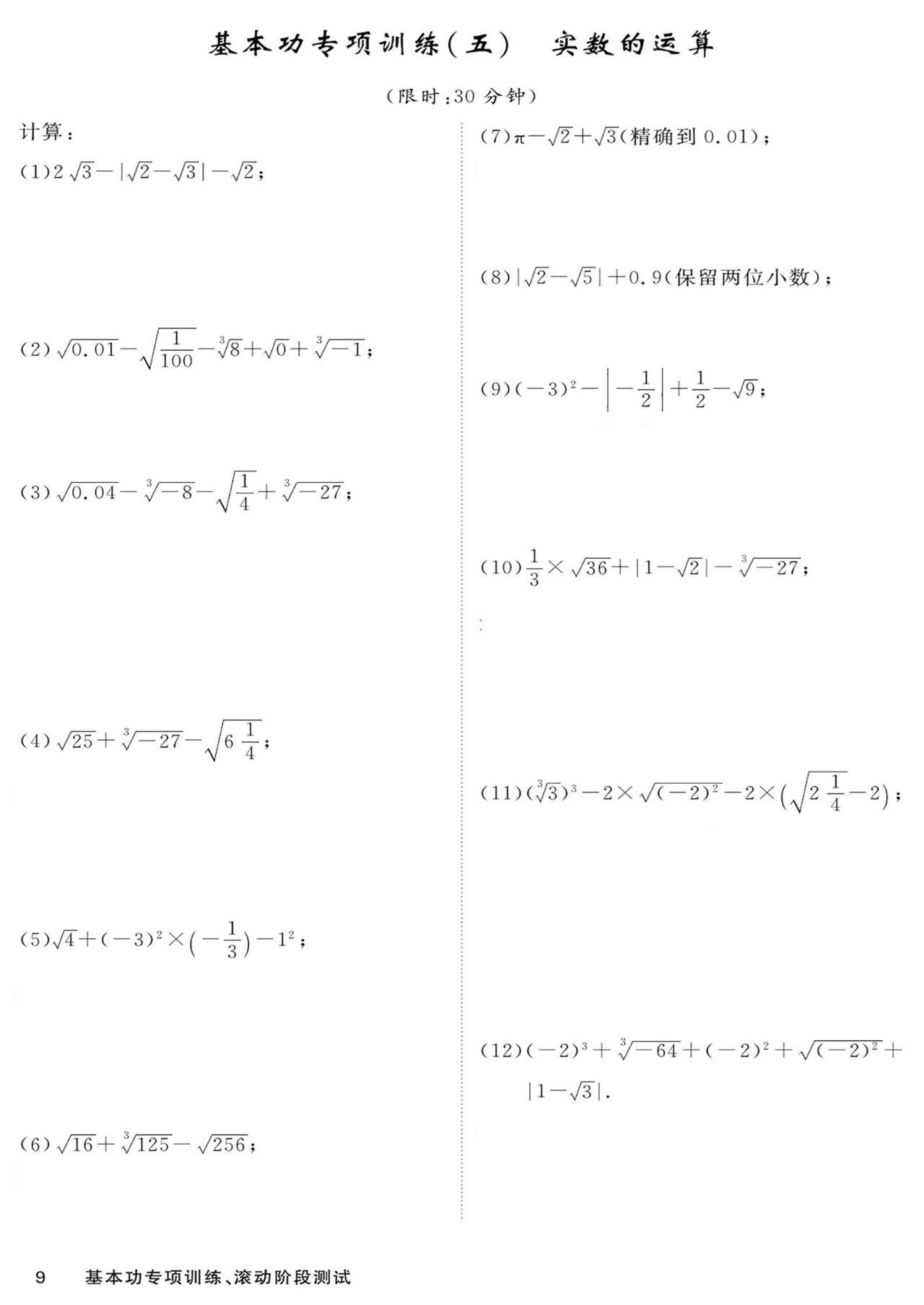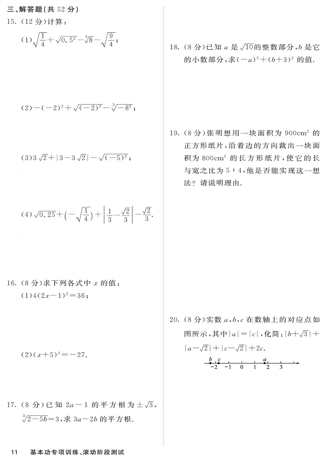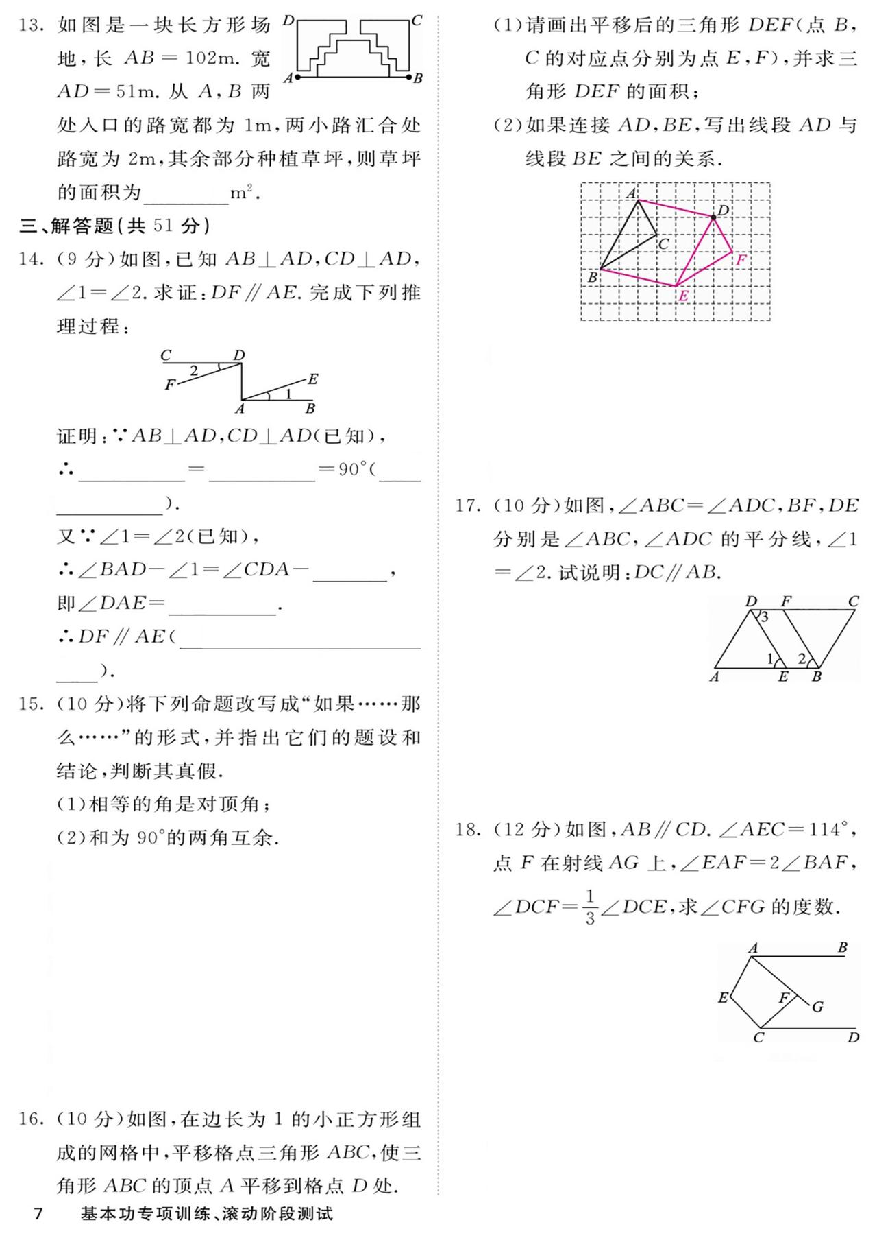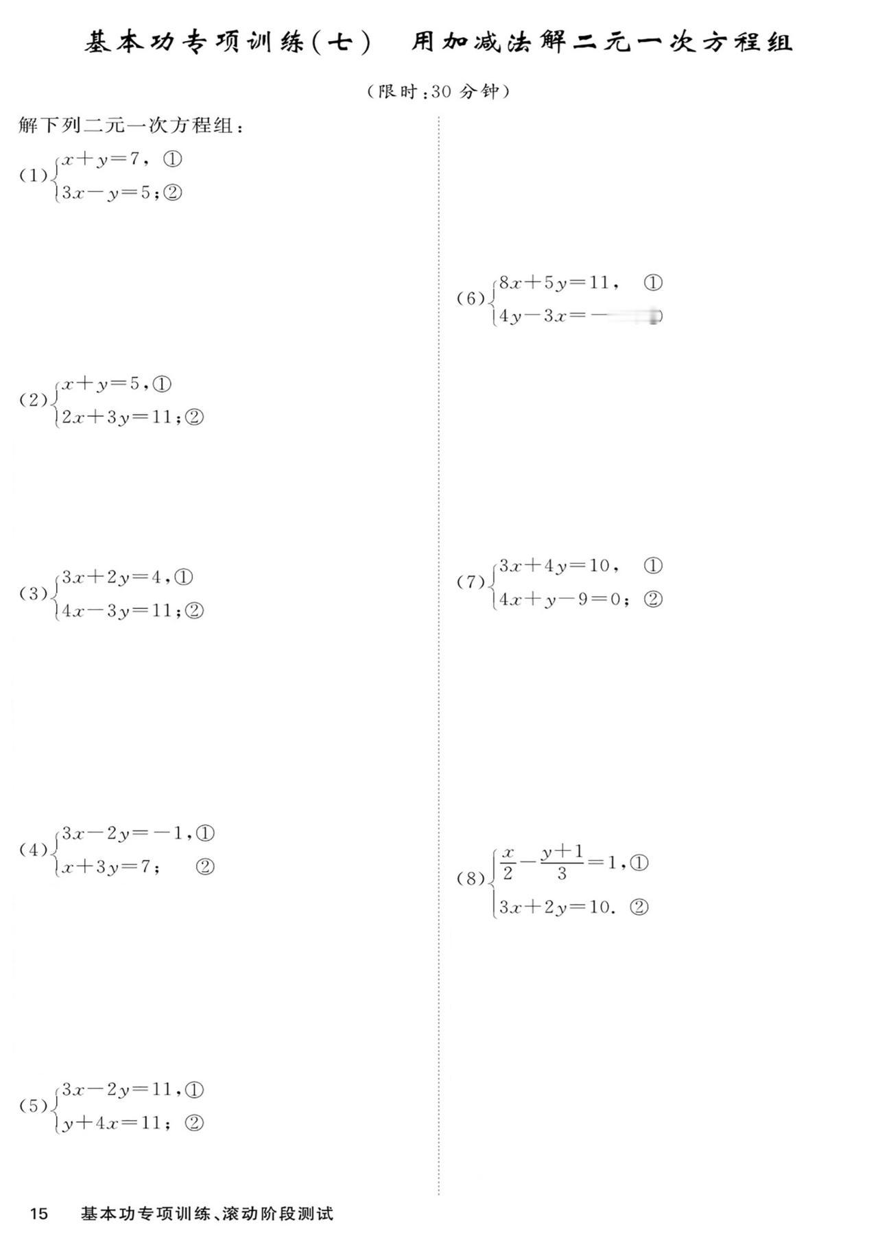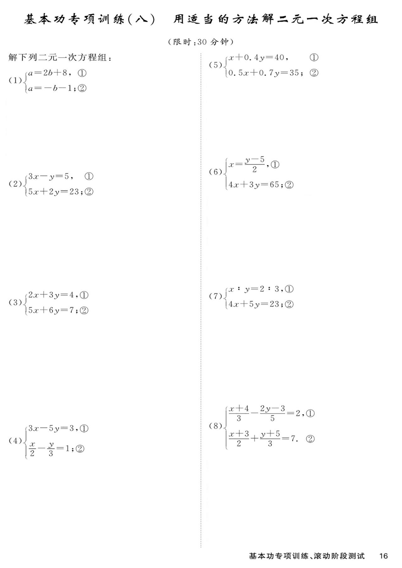 七年级数学——基本功滚动测15套汇编