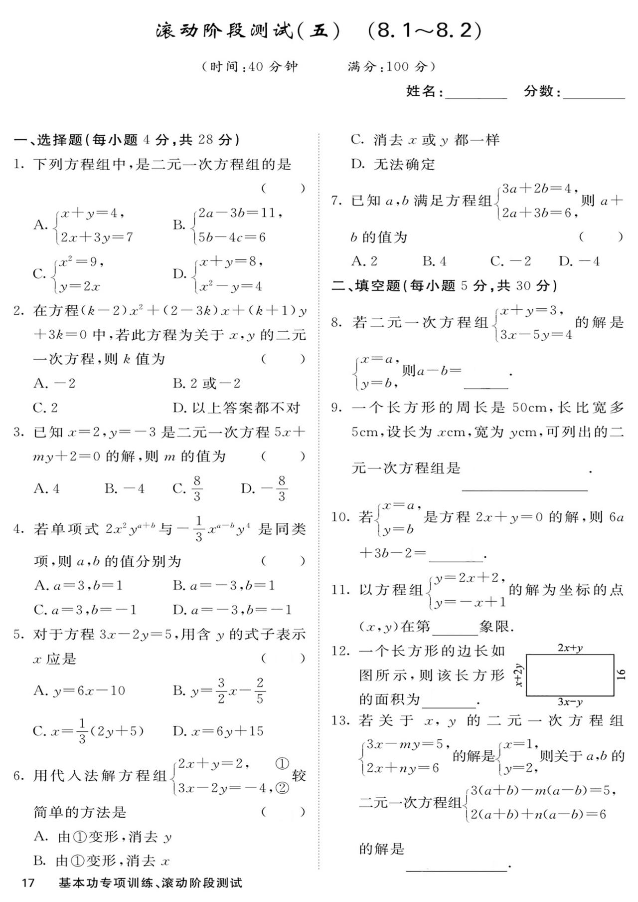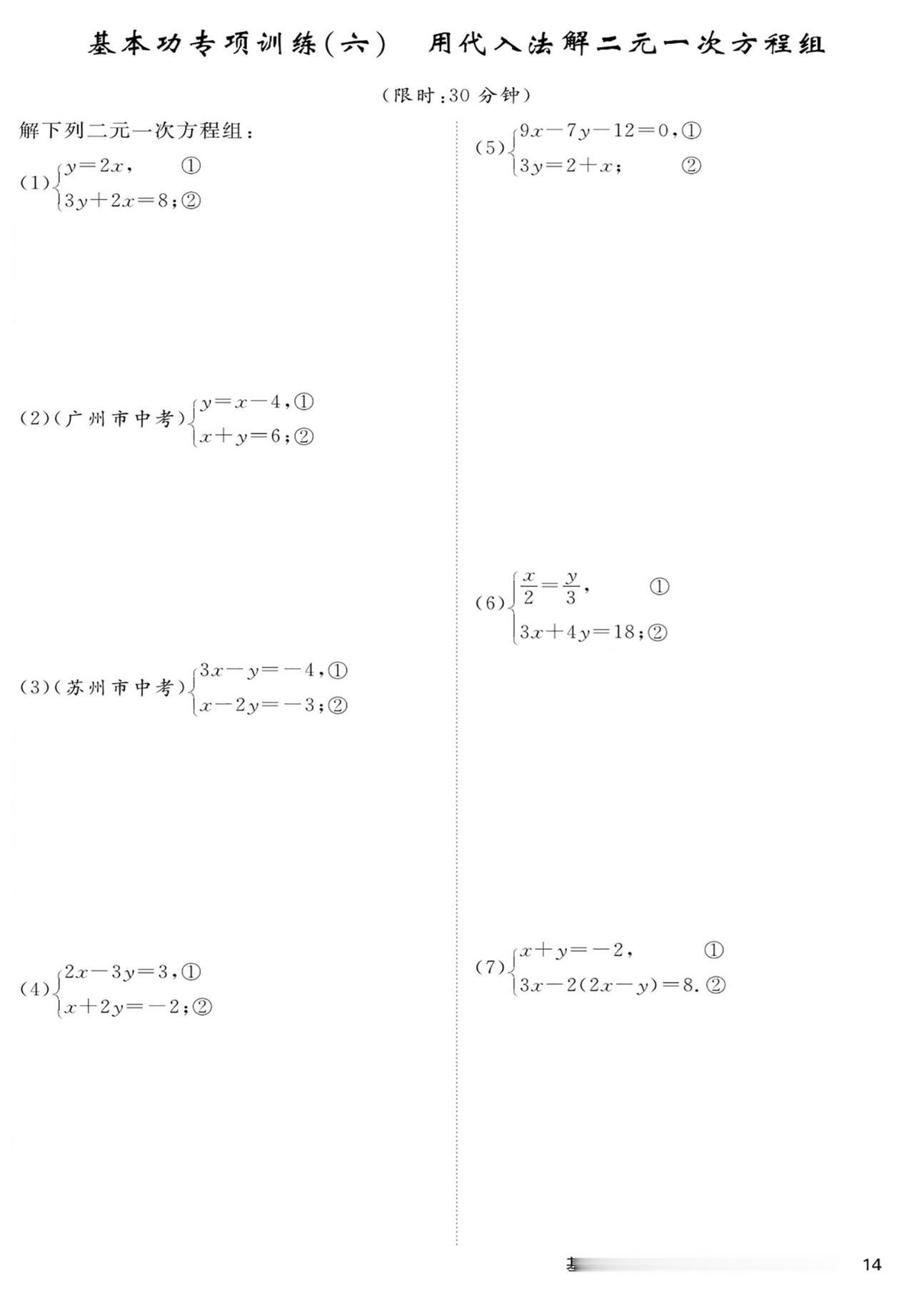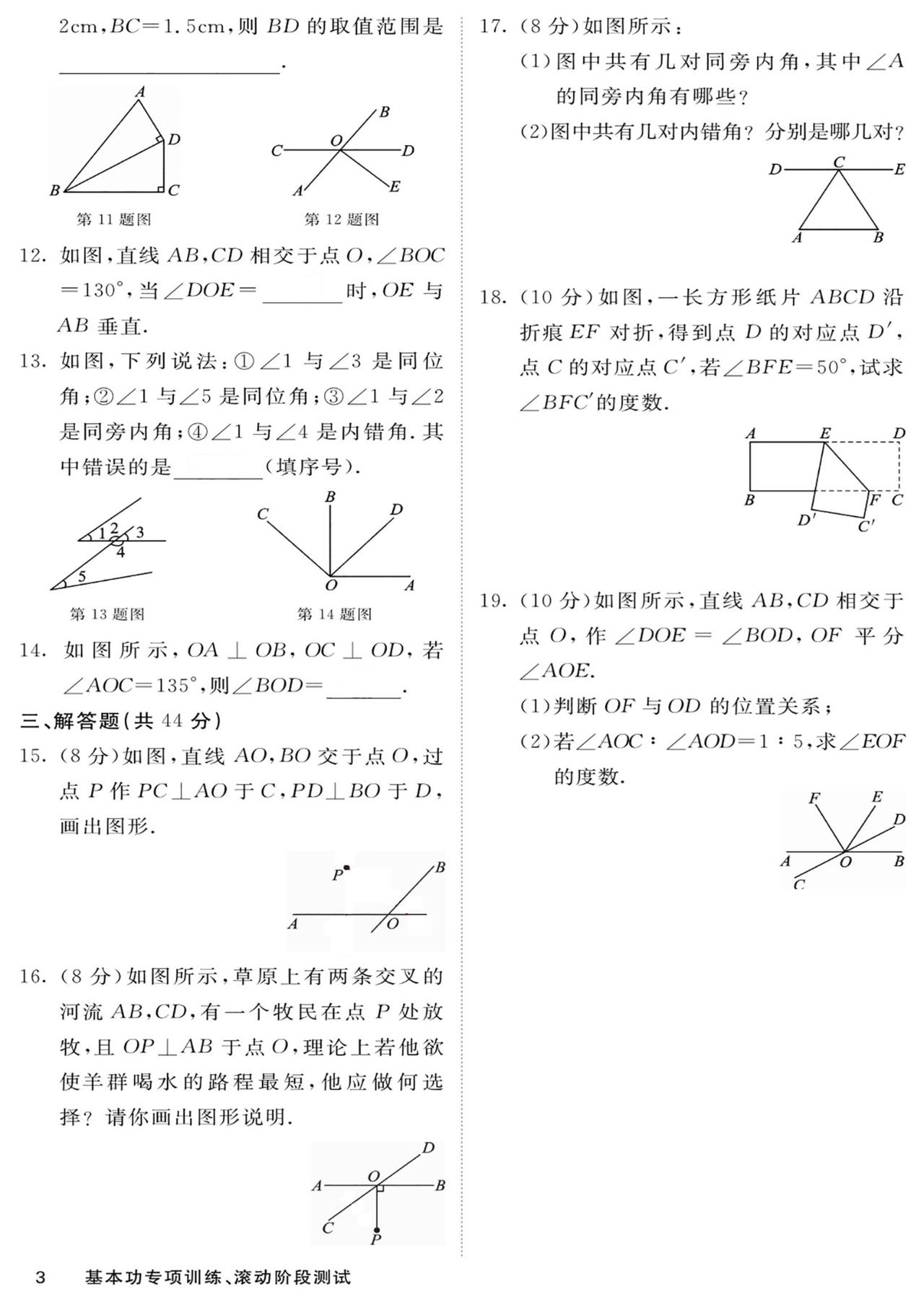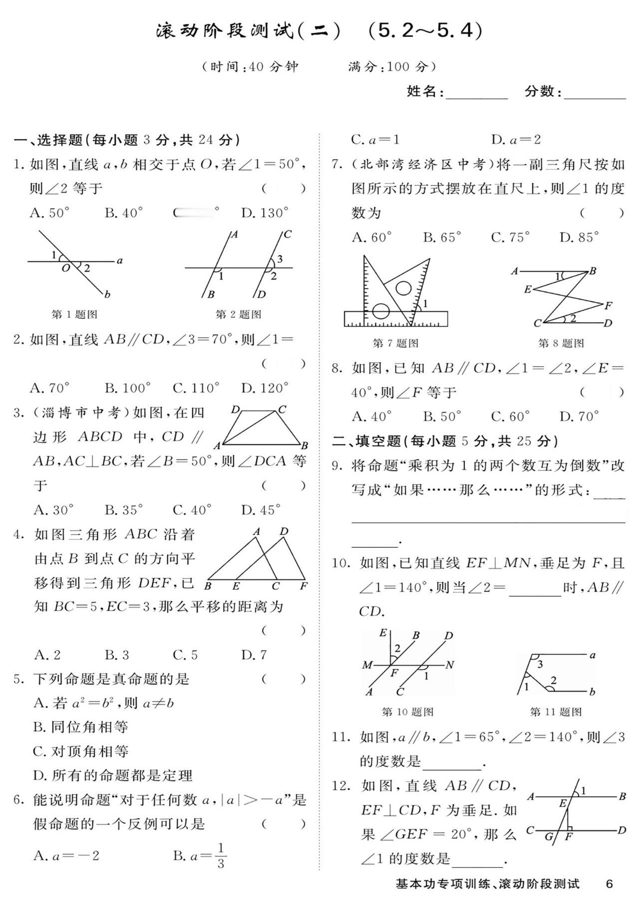七年级数学——基本功滚动测15套汇编