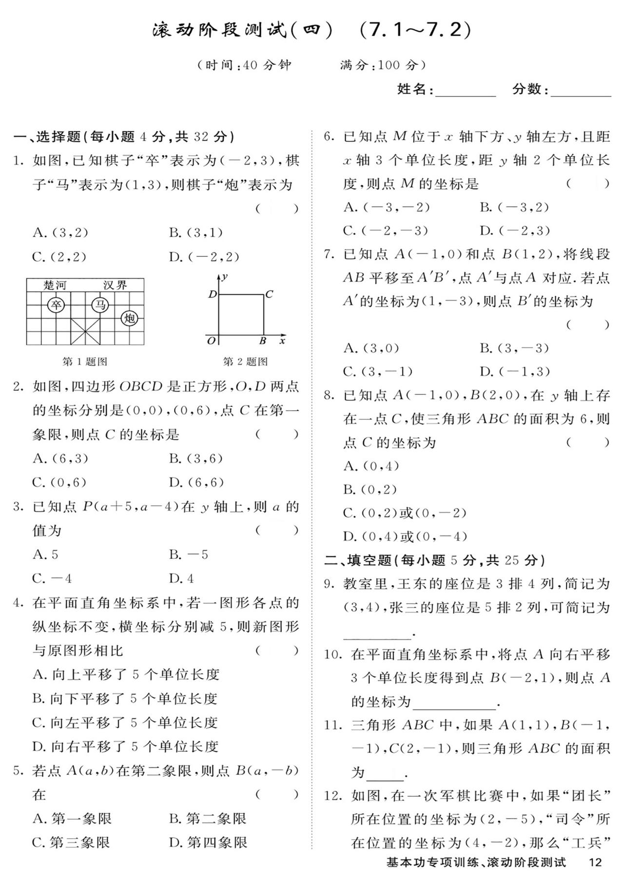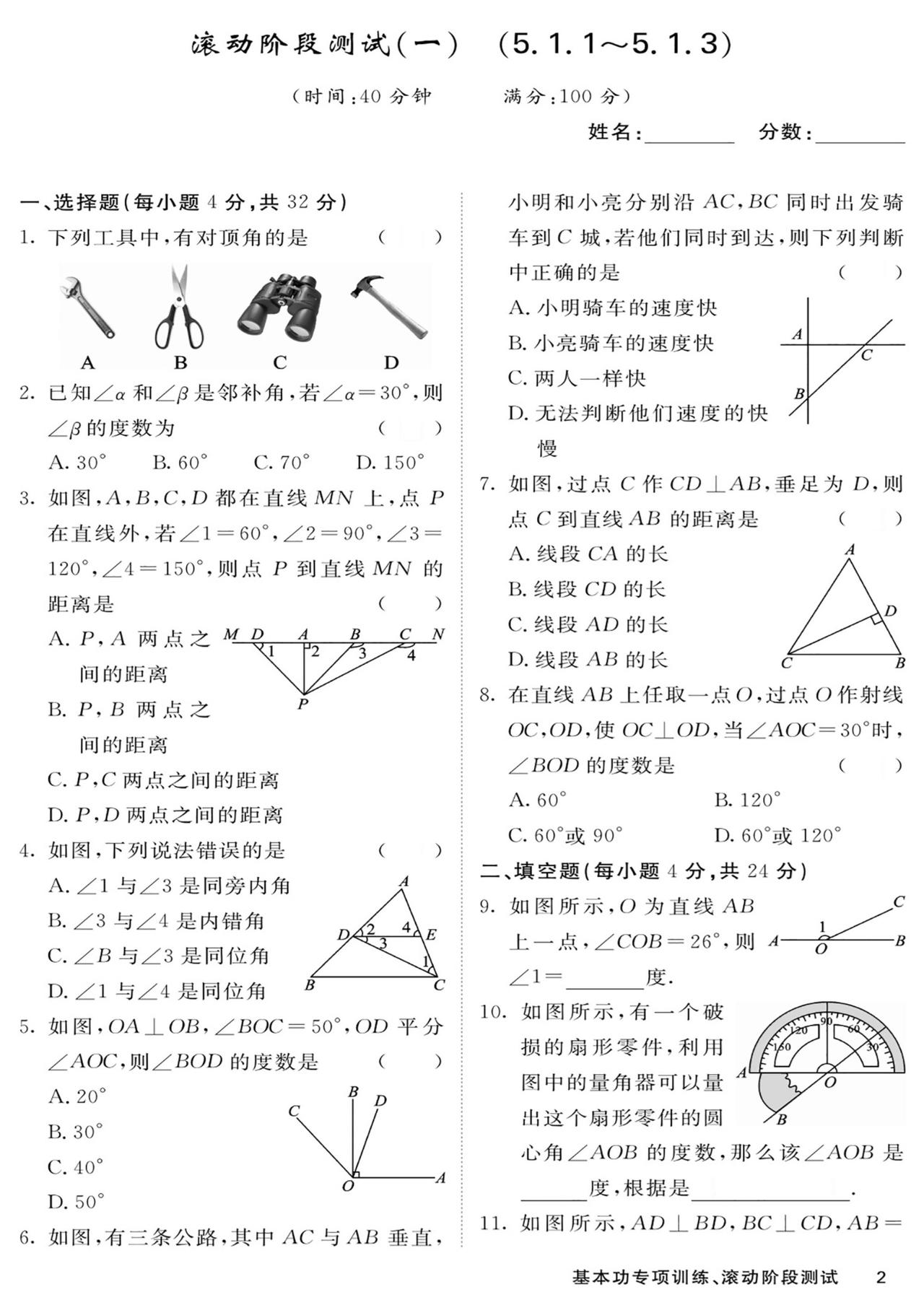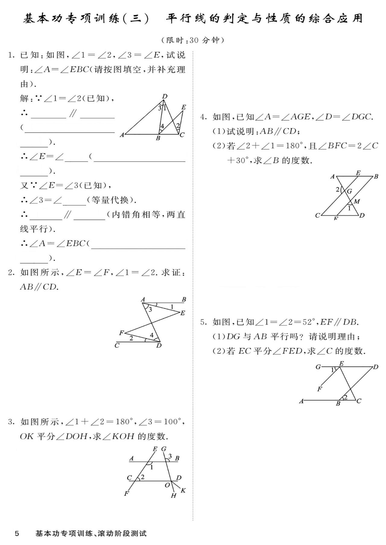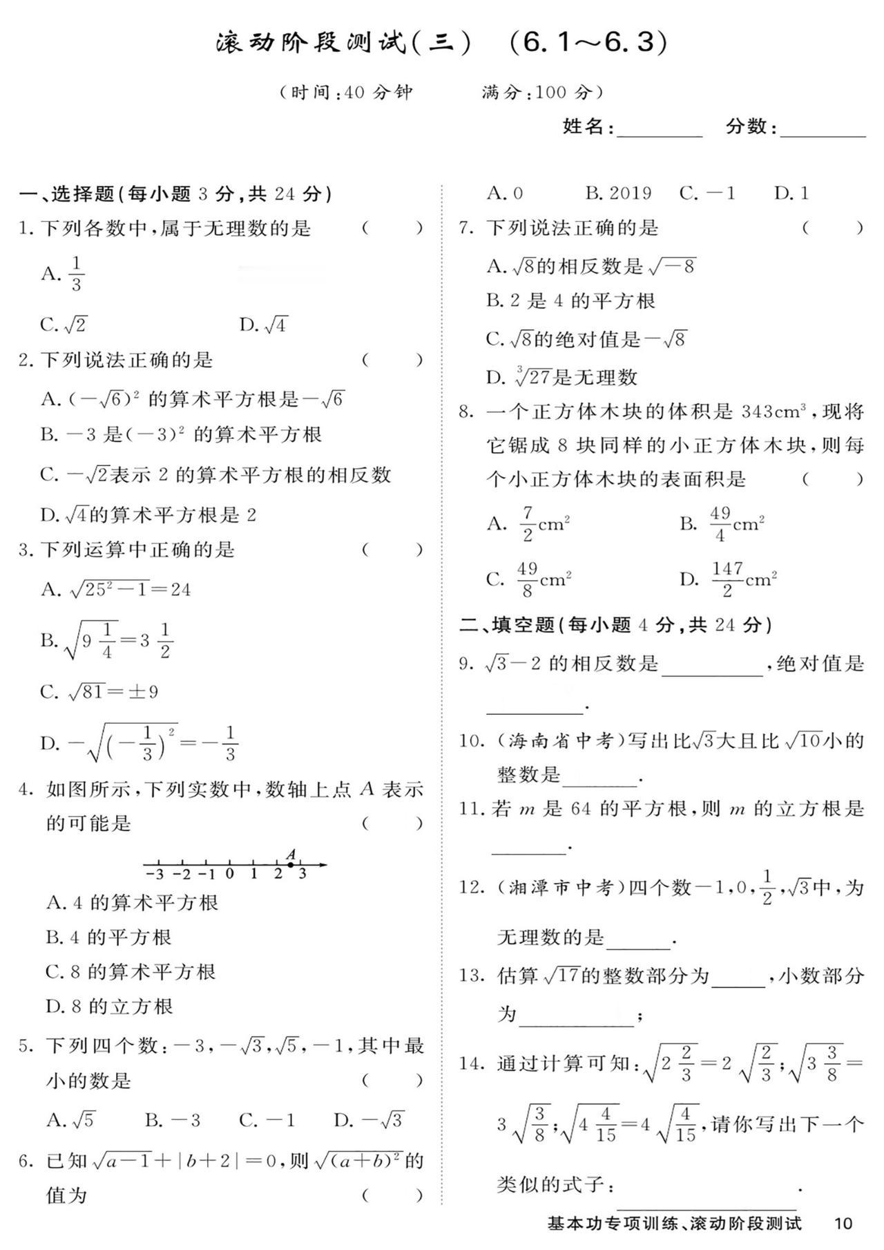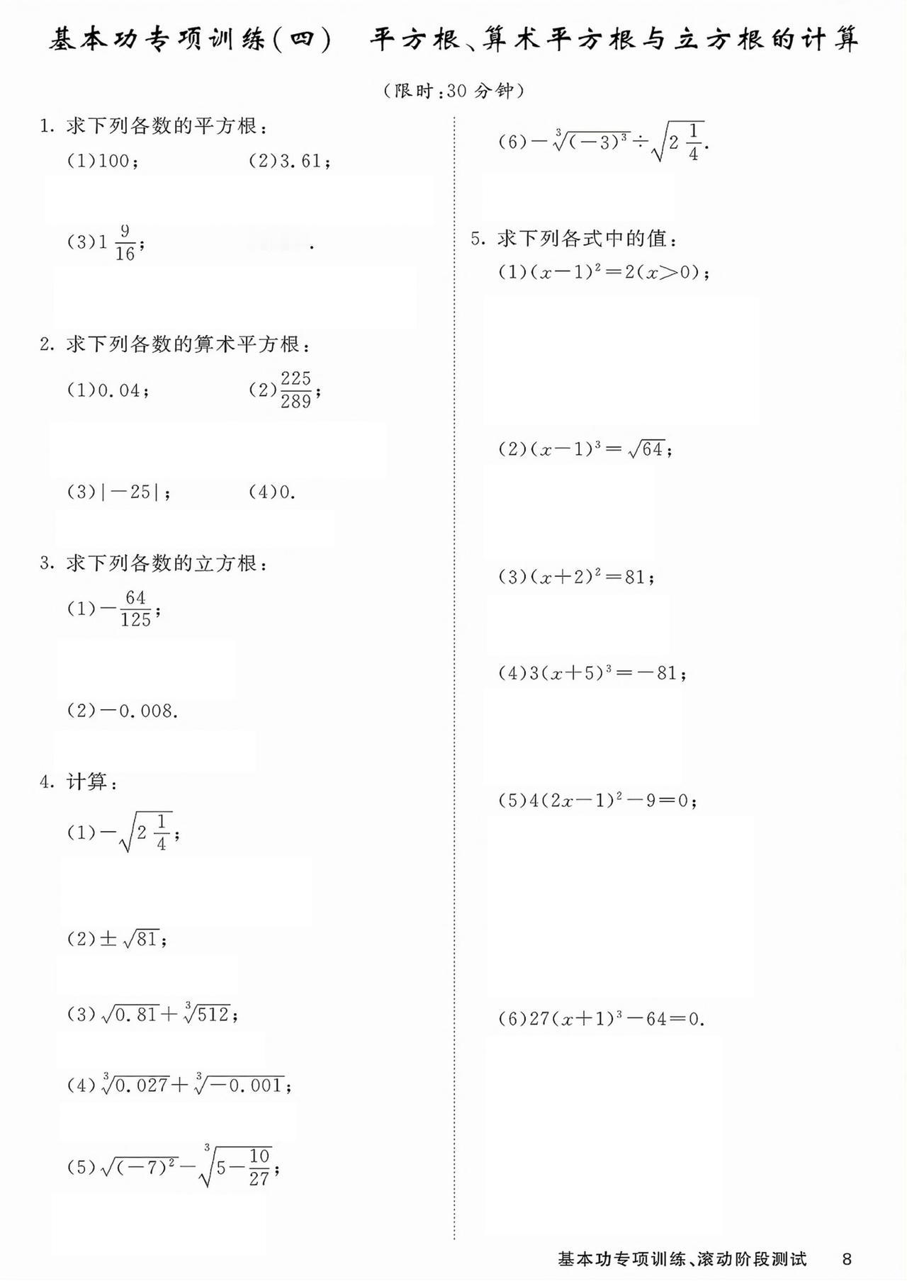 七年级数学——基本功滚动测15套汇编