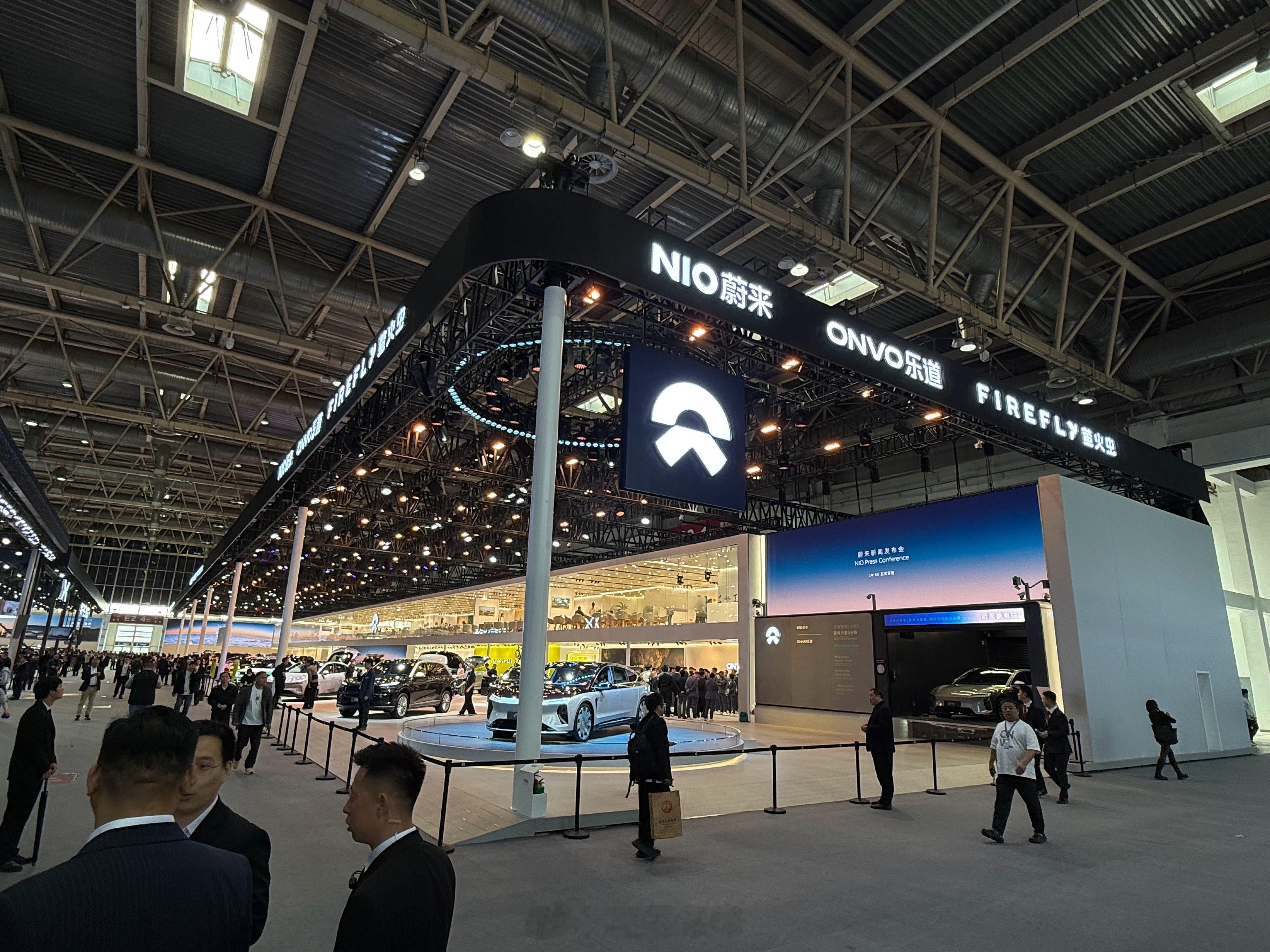 蔚来这次把蔚乐萤都放到了一起,展台是真的大啊,一眼望不到头的感觉。ES8 玄金特别版是今天的主角,全黑化还挺帅的
