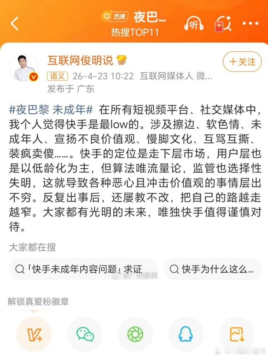 快手 慢脚文化,快手,门槛低,圈层素质低,慢脚文化盛行不足为奇。江南微评 :有关方面不能睁一只眼闭一只眼,尤其是未成年人玩网更不能容忍!快手 慢脚文化