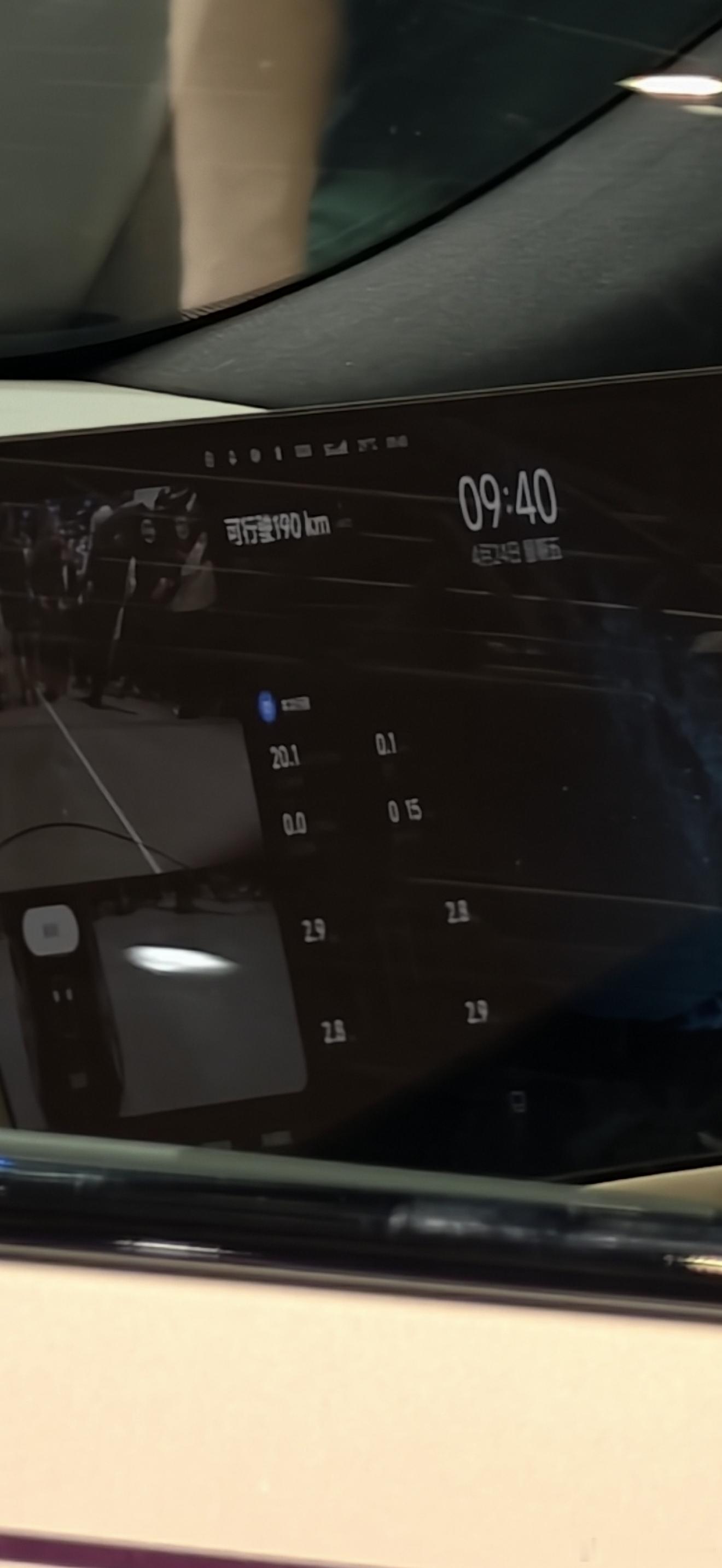4、车机UI有变化了,上面四个数字应该是四轮翘起来的角度或者高度,下面是个是胎压…