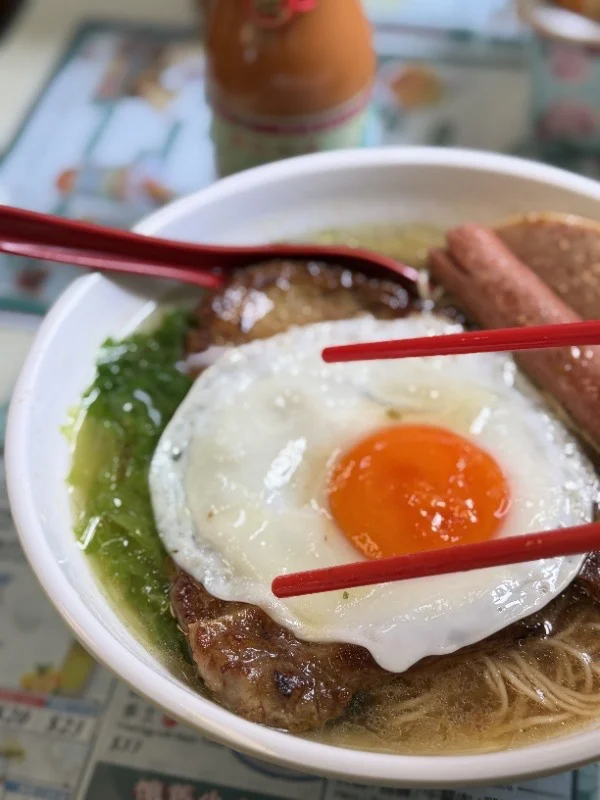 一进门就被那个金银满屋全餐面香迷糊了,料多到快溢出来!猪扒、午餐肉、火腿肠、煎蛋铺得满满当当,面条劲道爽滑,一口下去超级满足!