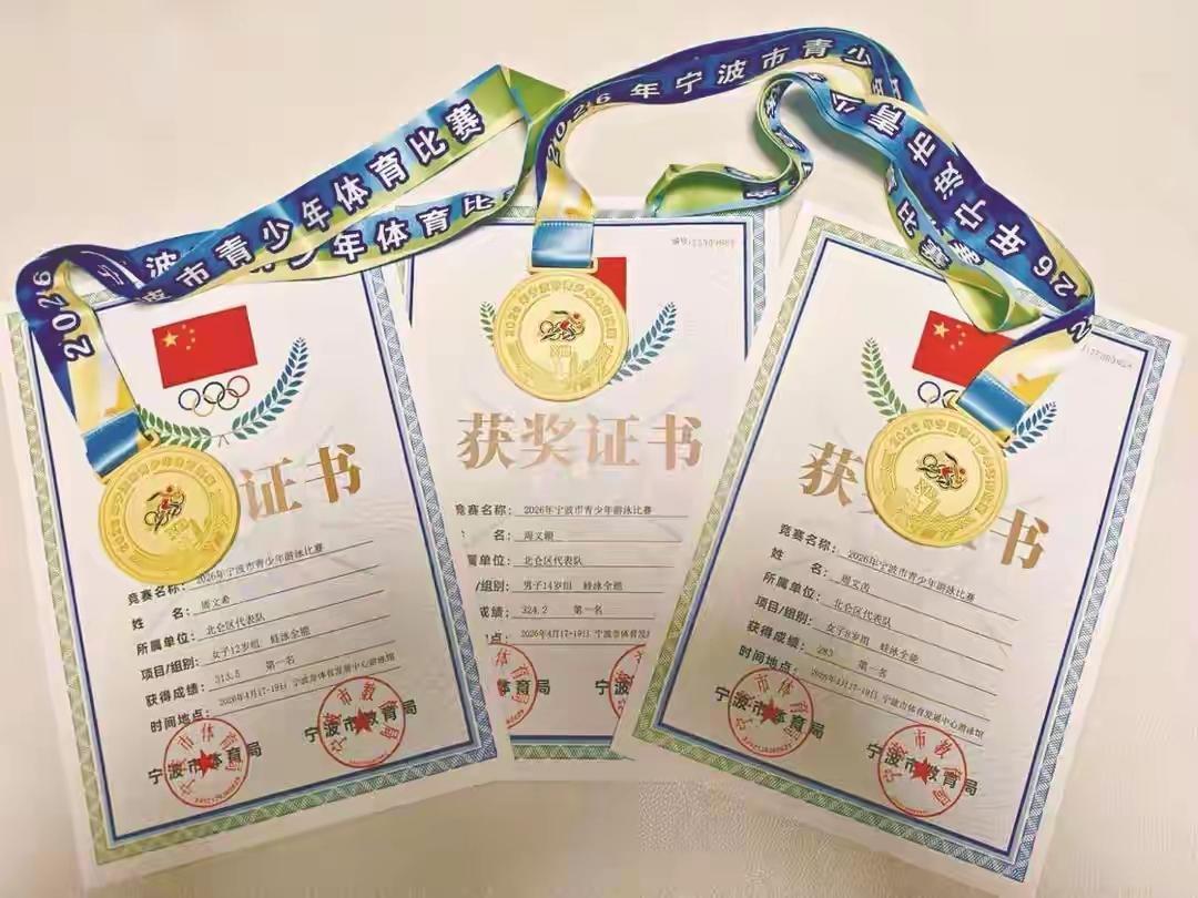这真是非常难得且令人振奋的场景!周家三兄妹在宁波市青少年游泳比赛中,分别获得了男子14岁组、女子12岁组和女子8岁组蛙泳全能金牌,展现了他们卓越的游泳天赋和刻苦训练的成果。兄妹三人能够在同一比赛中都站上最高领奖台,不仅体现了他们个人的实力,也反映了家庭的支持和培养。这样的成绩无疑为他们未来的游泳道路奠定了坚实基础,也为北仑新碶街道争光。祝愿他们在今后的比赛中继续取得优异成绩!青少年游泳竞技 三兄妹同一比赛获奖