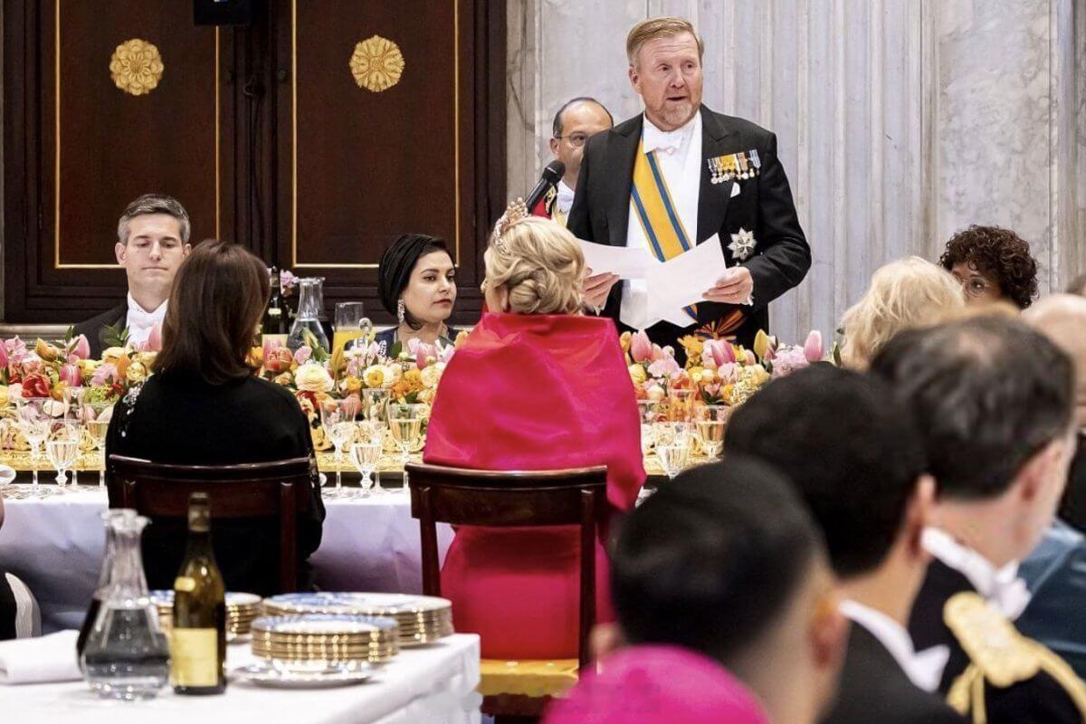 4.23 荷兰国王威廉-亚历山大和玛克西玛王后出席外交接待晚宴,玛克西玛这条晃得
