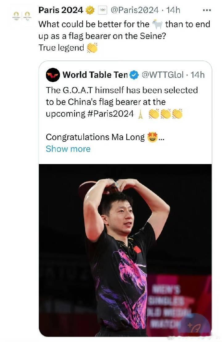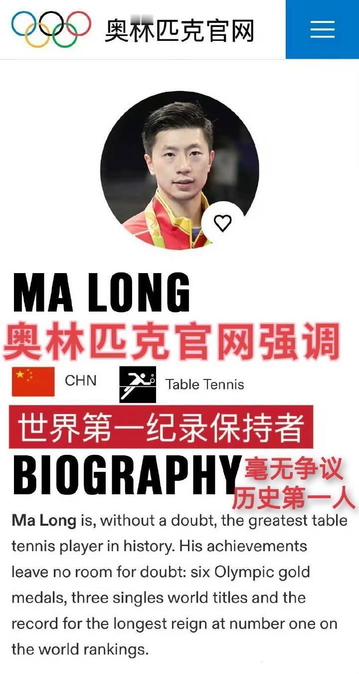 马龙乒坛历史第一人 纵观体坛各大项目GOAT国内外争论不休,奥林匹克官方协会和国际组织定论的有且只有乒乓球,再模糊国际乒联的公信力也没有用,因为说到马龙是毫无争议的GOAT的组织有:国际奥组委、奥林匹克博物馆、巴黎奥运会官方、非洲奥协、奥组委官网、奥组委X官号、ITTF社媒和官网、WTT、人民日报、中国奥组委官方、中国体育报(背靠体总)、新华网等。