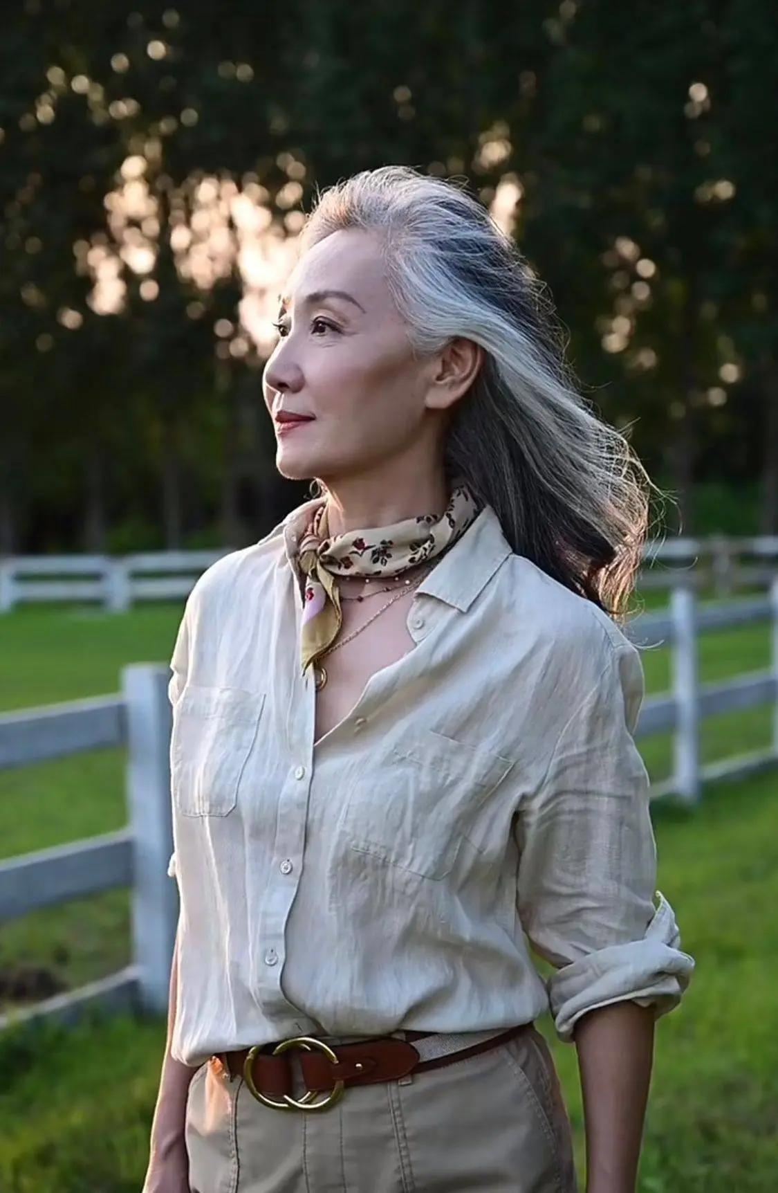 如果你身材好,皮肤白那么白发披肩也很美。在一个视频中看到这美女的奶奶灰披发太美了