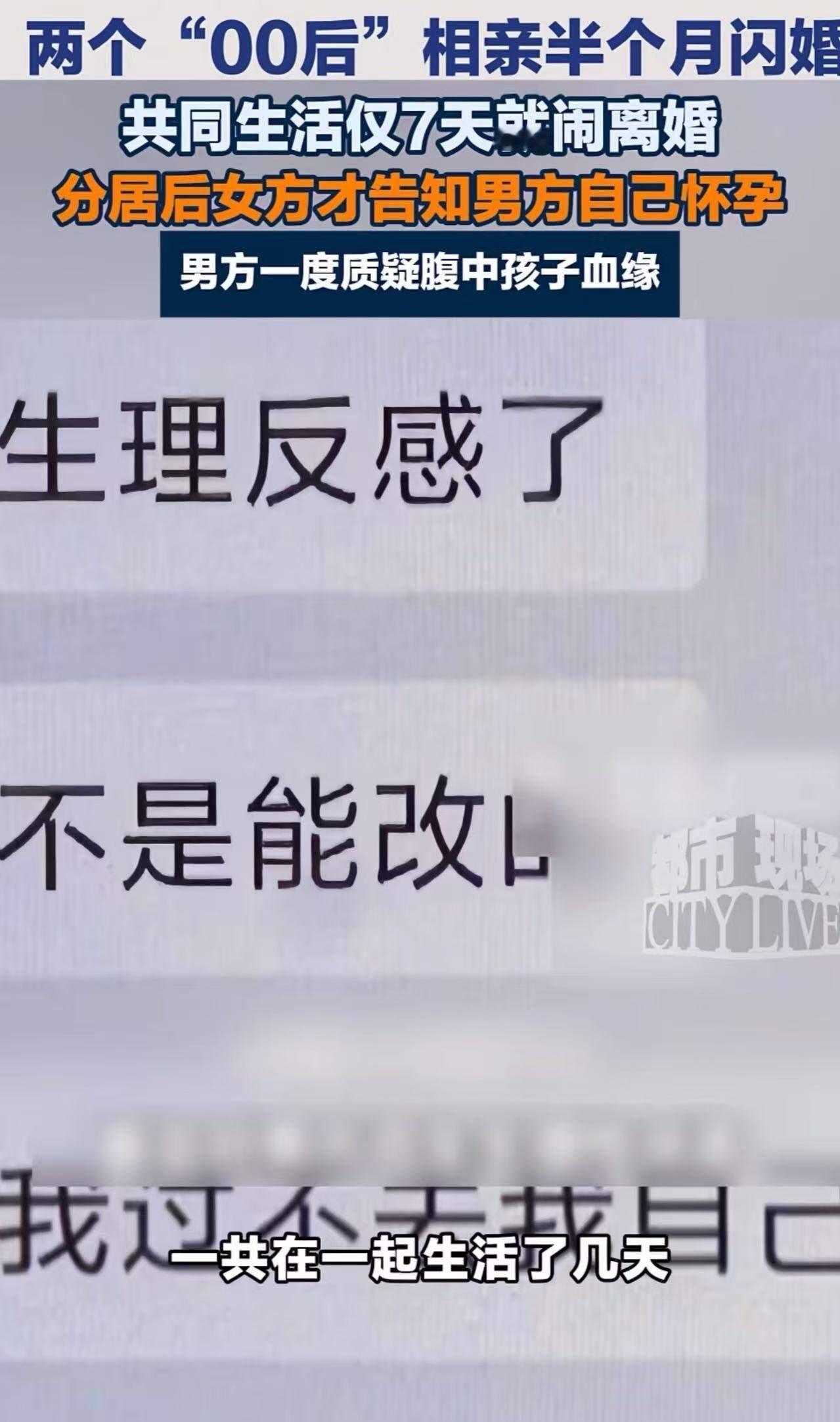 21岁女子和男方闪婚,仅仅7天后,婚姻就走到了悬崖边缘——她怀孕了,却对丈夫产生了“生理性厌恶”,不想继续这段关系;而男方则愤怒又无奈:“结婚前后花了40万,认识15天就领证,还是她倒追我的!给完彩礼就生理性厌恶了?”这场看似荒诞的婚姻闹剧,背后隐藏的是当代年轻人在爱情、婚姻和现实之间的巨大撕裂。
