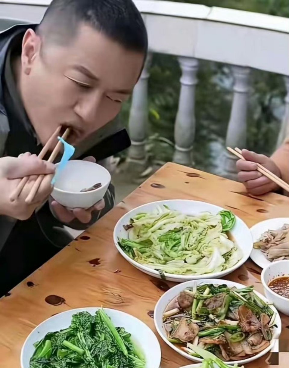 李亚鹏吃着普通的农家菜也津津有味,看来他真的放下了过去,专注于养生