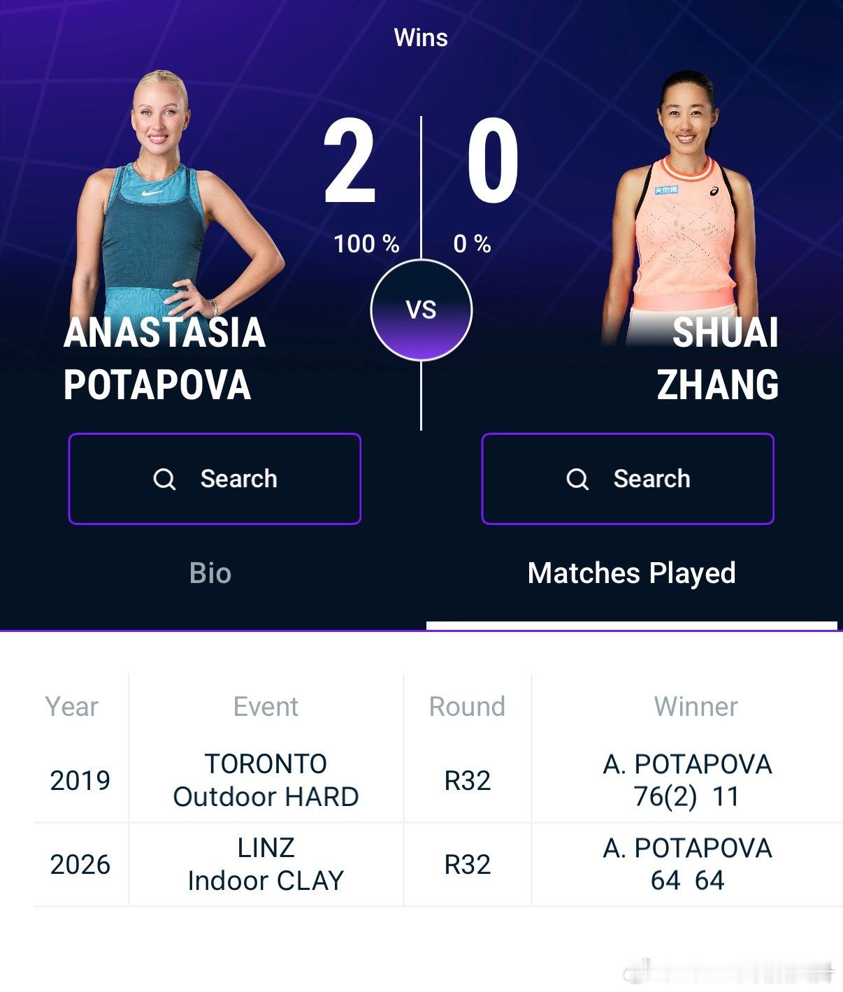 🇨🇳张帅vs🇦🇹波塔波娃两位在林茨刚打过波塔波娃当时6-4/6-4获胜