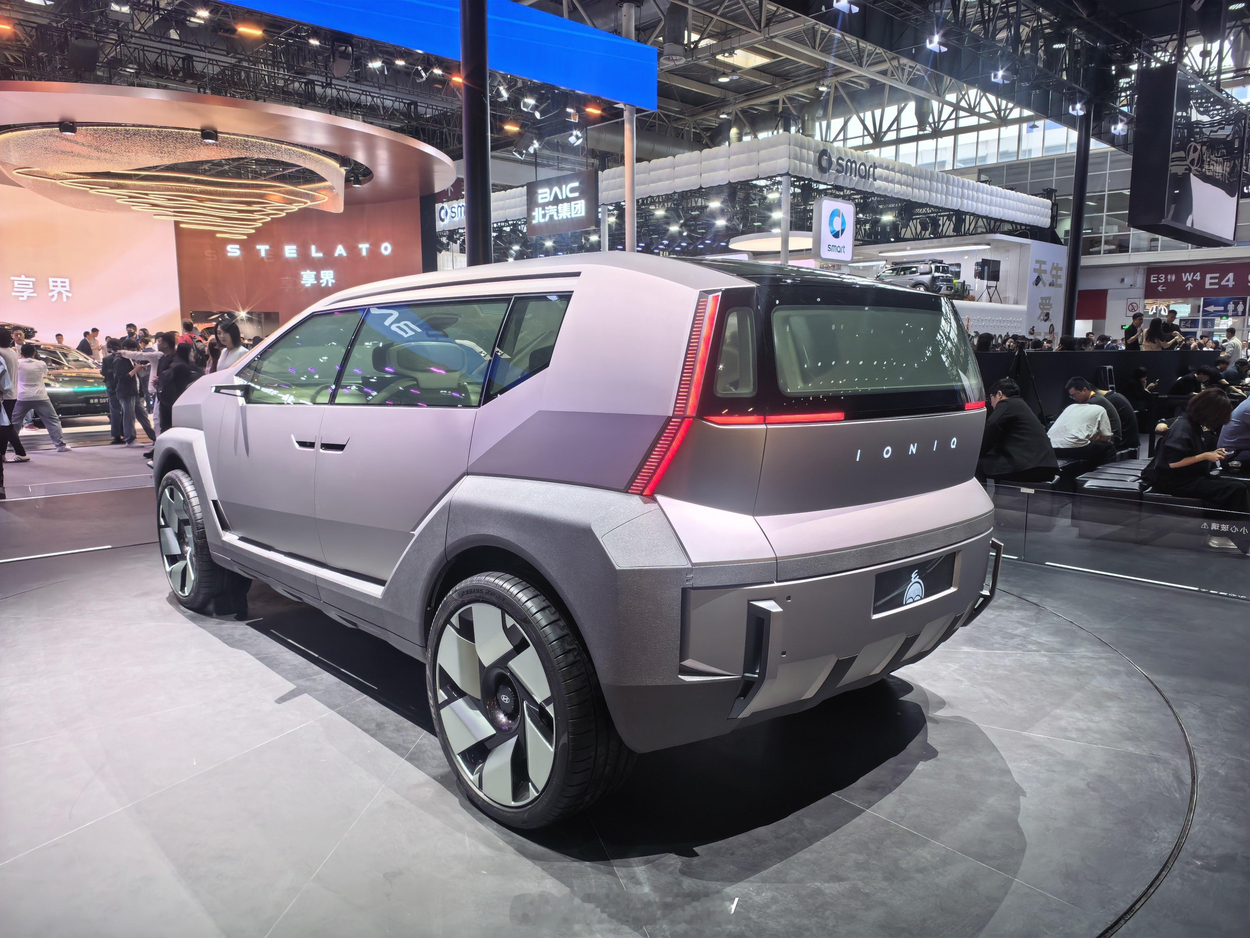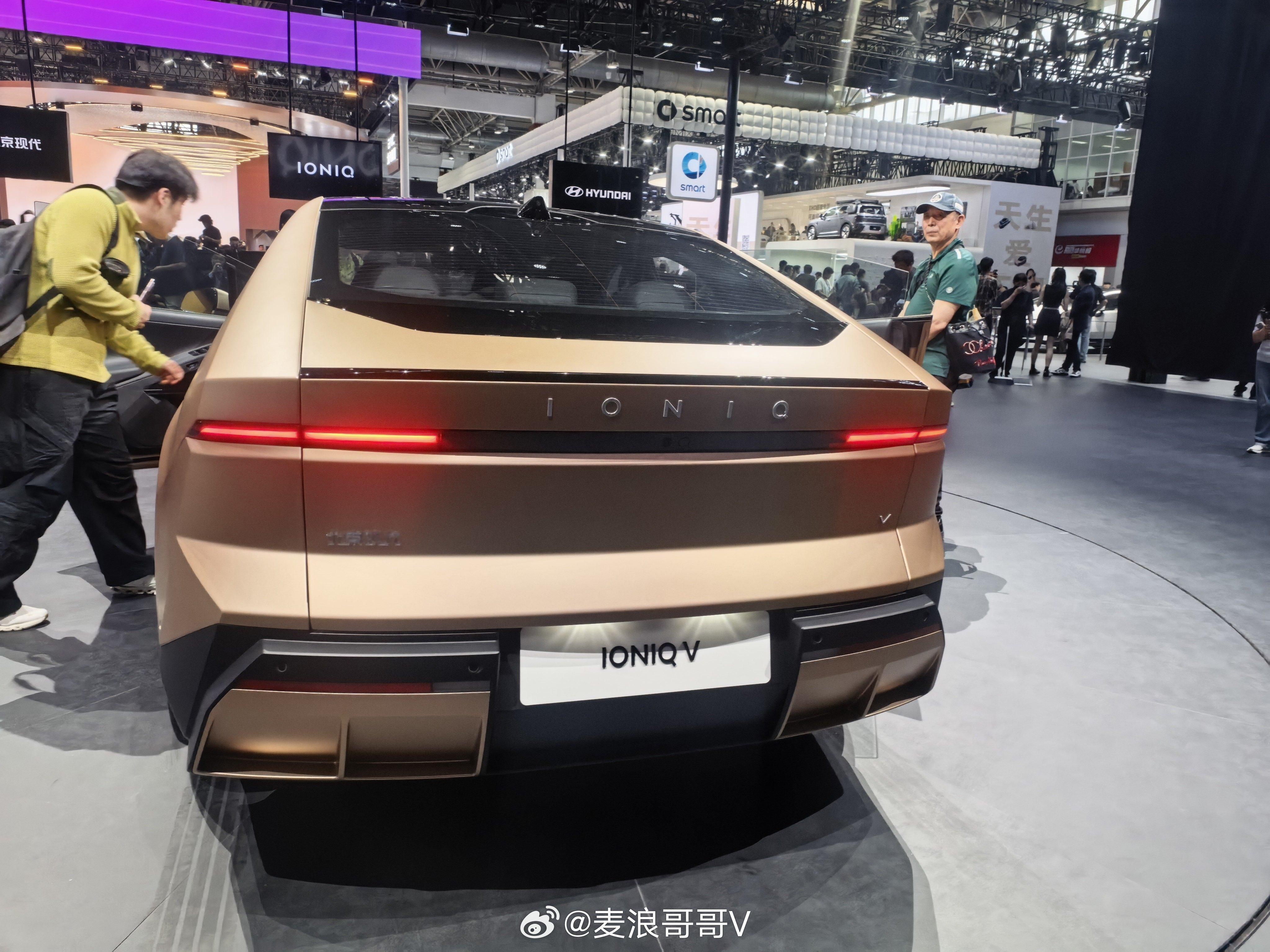 今天跟车展概念车看了不少,但真正让我惊讶的,是现代展台艾尼氪概念车的量产版!他们展示了两台概念车,一辆叫IONIQ V概念车图1-3,另一辆叫IONIQ E,代表地球图4-6。造型一个比一个前卫,像从未来直接开出来的,不过围观最多的,是后面那辆,北京现代打造的IONIQ V量产版图7-9。为啥?因为它跟概念车长的太像了,已经不是那种借鉴一下元素的像,是线条到细节都高度还原的那种,总之这事放合资品牌里,敢这么做我觉得已经挺大胆了,你要知道概念车好看归好看,真能量产还不妥协设计,这事真就没那么简单了。我从品牌方那边了解到的是它用的宁德时代电池,智驾用的momenta,就光这两样我盲猜如果它定价十几万的话,诚意相当可以了吧,临走时候我们摄像小伙伴跟我说:“如果到时真这价儿,就不考虑XX了(避免被起诉就不提车型了),大家觉得怎么样2026北京车展艾尼氪金星全球首秀