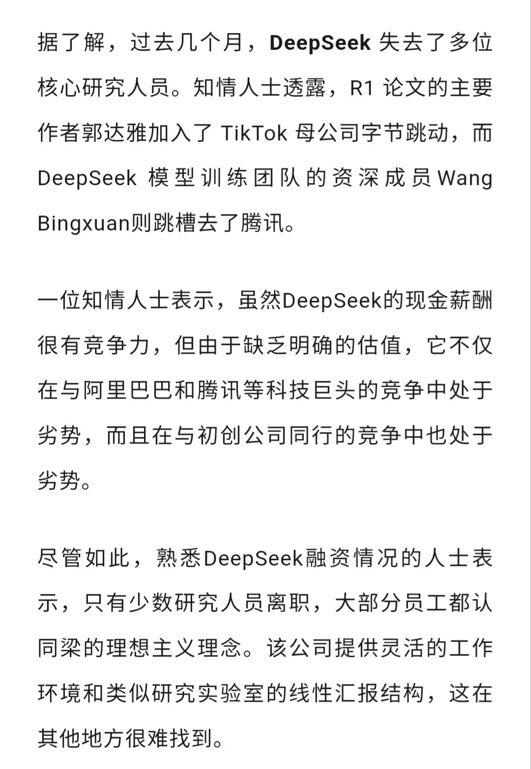 据说现在估值已经加到450亿美元了,然后搞了半天,deepseek是为了把价值拉上去让员工看到美好的财富自由的未来,防止核心员工被挖走