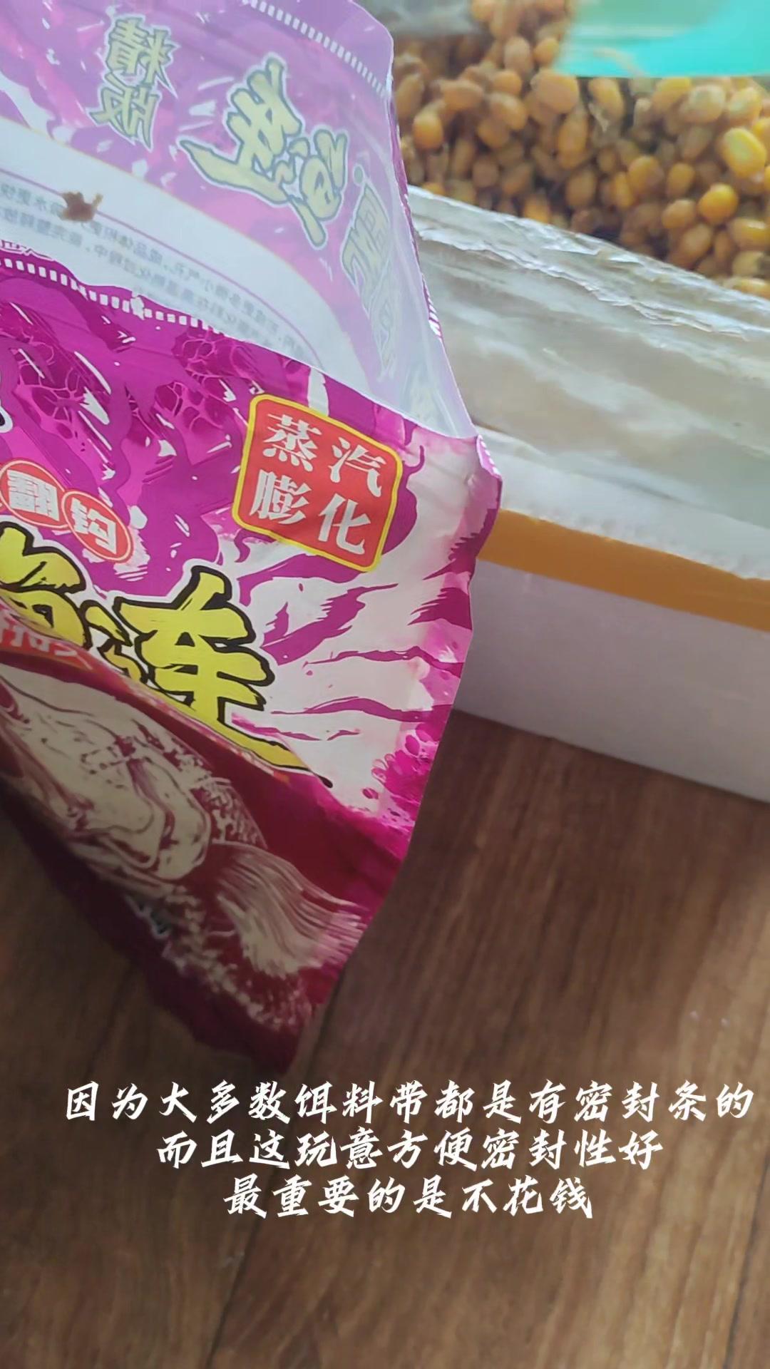 1️⃣保存方法:用带密封条的饵料袋分装,密封性好还不花钱。每次取用多少拿多少,避免频繁开盖污染。装袋前记得注意干净卫生,用开水烫过的勺子更干净。