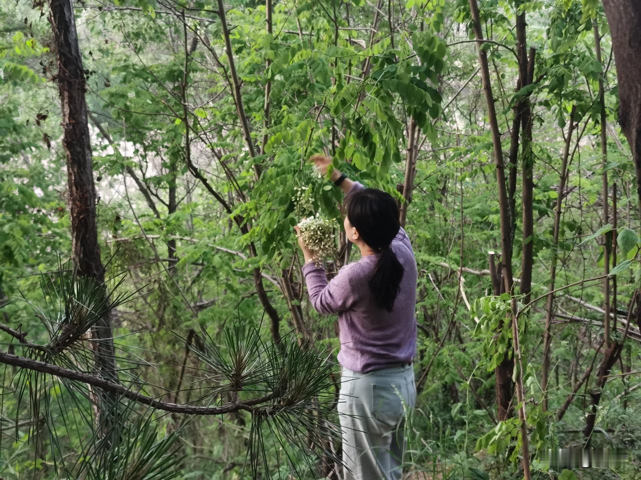 今儿回家路上瞧见一片树林杨槐花开得正盛,没忍住就摘了些。杨槐花那清甜的味儿,闻着就让人馋。拿回家蒸个杨槐花麦饭,简直美滋滋。可摘的时候那叫一个痛苦。杨槐树枝上刺超多,稍不注意就被扎得满手是伤,我这手都被扎好几个眼儿了。不过为了这一口美味,这点小伤也值了。杨槐花 户外 摘花