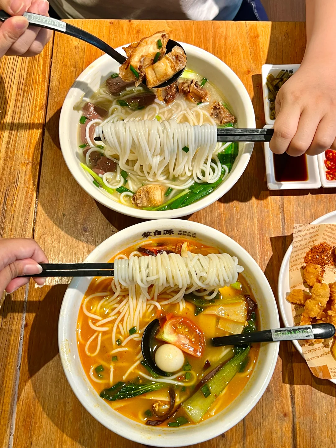 鸡肉先卤后炸,里面的肉还超入味,搭配滑嫩嫩的鸭血,一口米线一口肉,再喝上一口鲜汤,我直接连汤底都喝光光。。。
