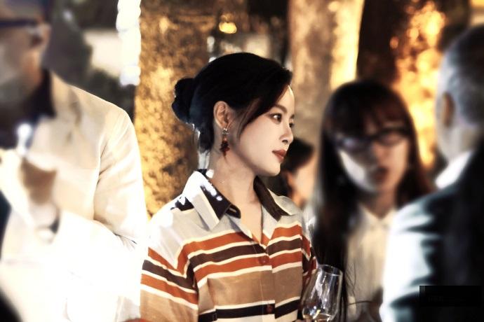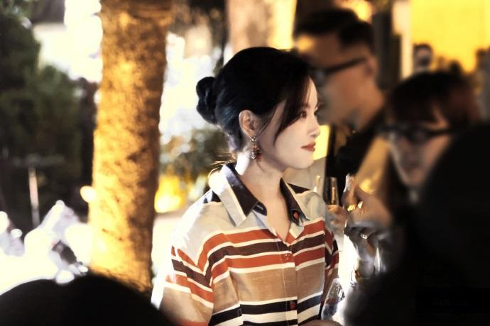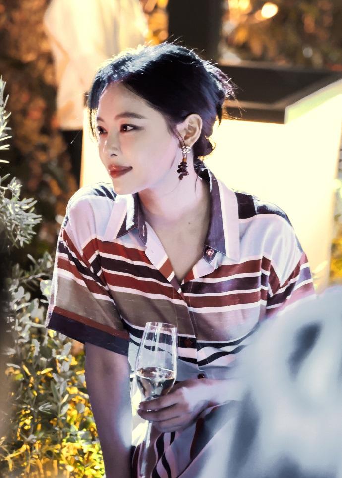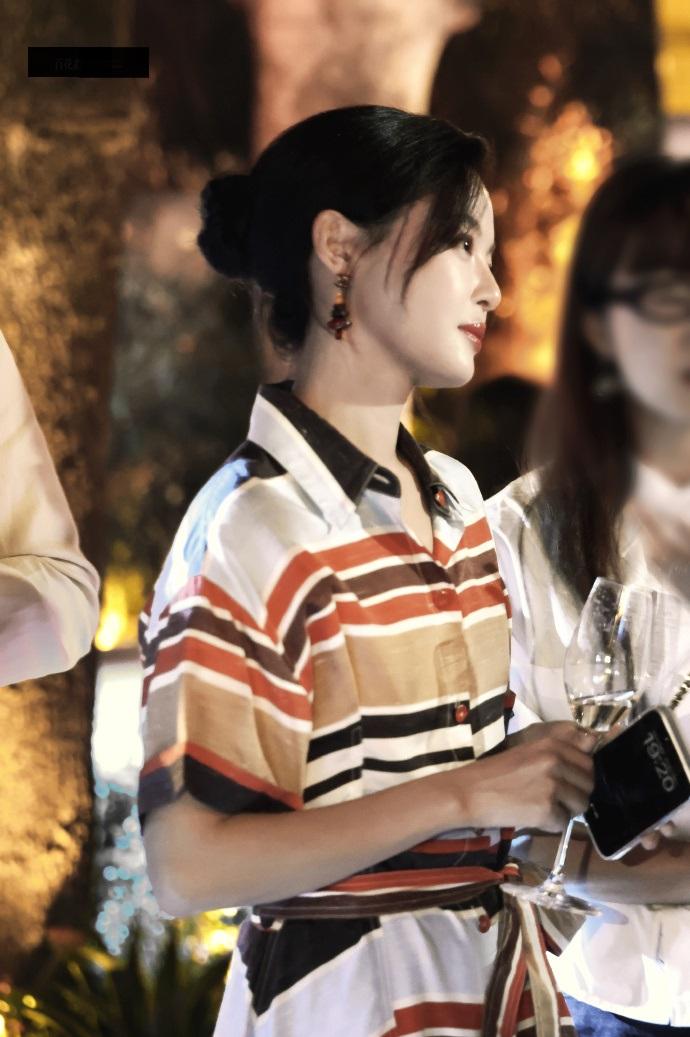 辛芷蕾穿了一件很美的条纹裙,凸显出了潇洒迷人的气质,看上去很有吸引力。