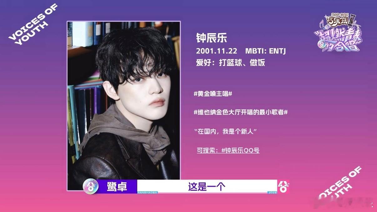 钟辰乐承认自己是梦男超燃青春的合唱 小乐乐反差感拉满,在综艺里和余宇涵疯狂唠嗑库里,追星话题无缝衔接,性格开朗随性,大方认领库里梦男,可爱值直接爆棚