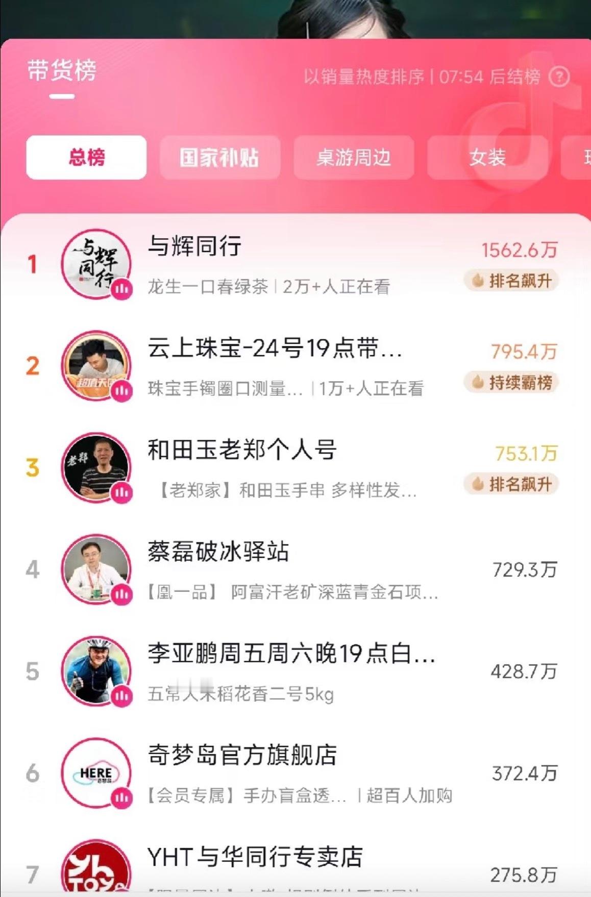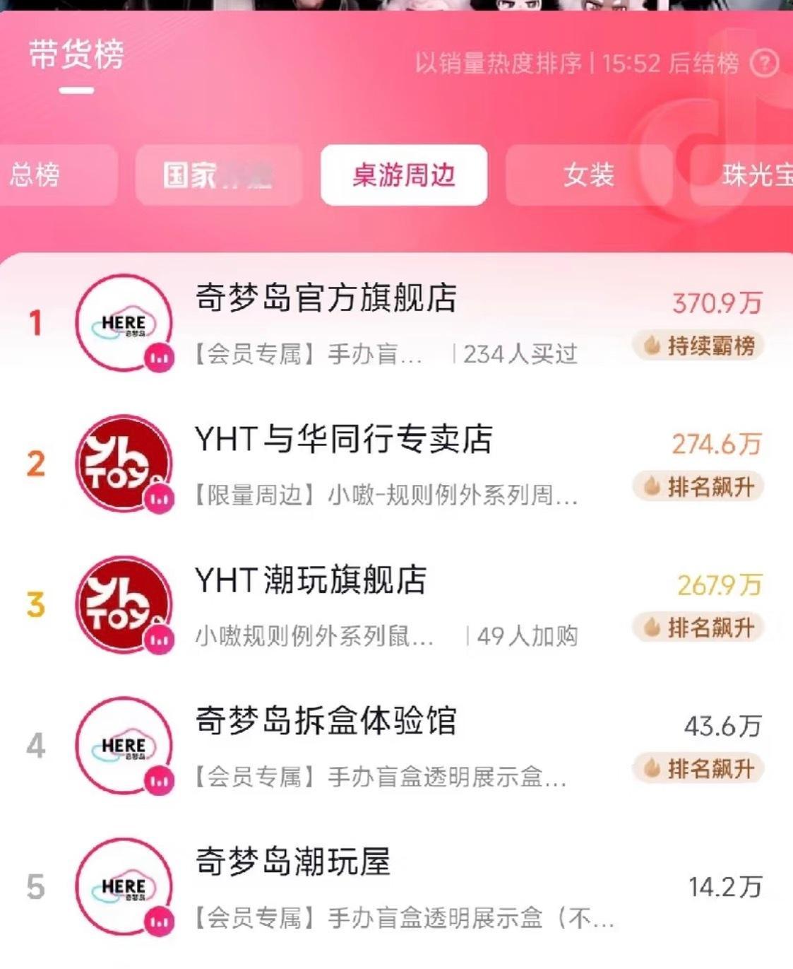 小嗷是真的被带飞了。。代言人未出镜,实时在线3w+人!桌游带货直接霸榜总榜第六。