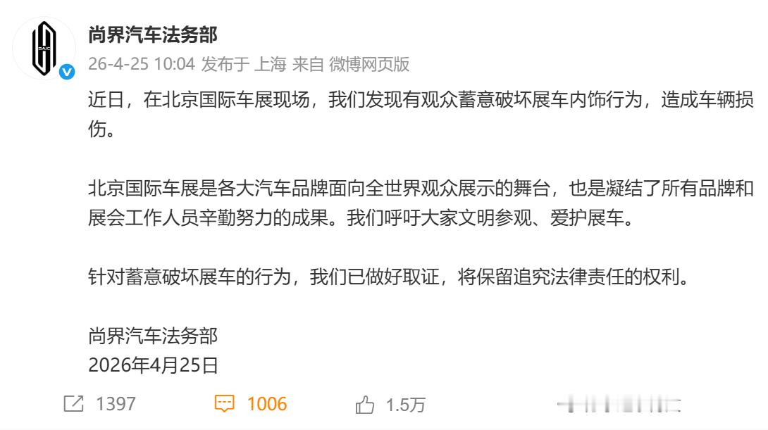怎么有这么坏的人??故意去车展和门店的展车里,使劲扣Z7的内饰板搞破坏,尚界法务部已经行动,必须狠狠锤它们啊!