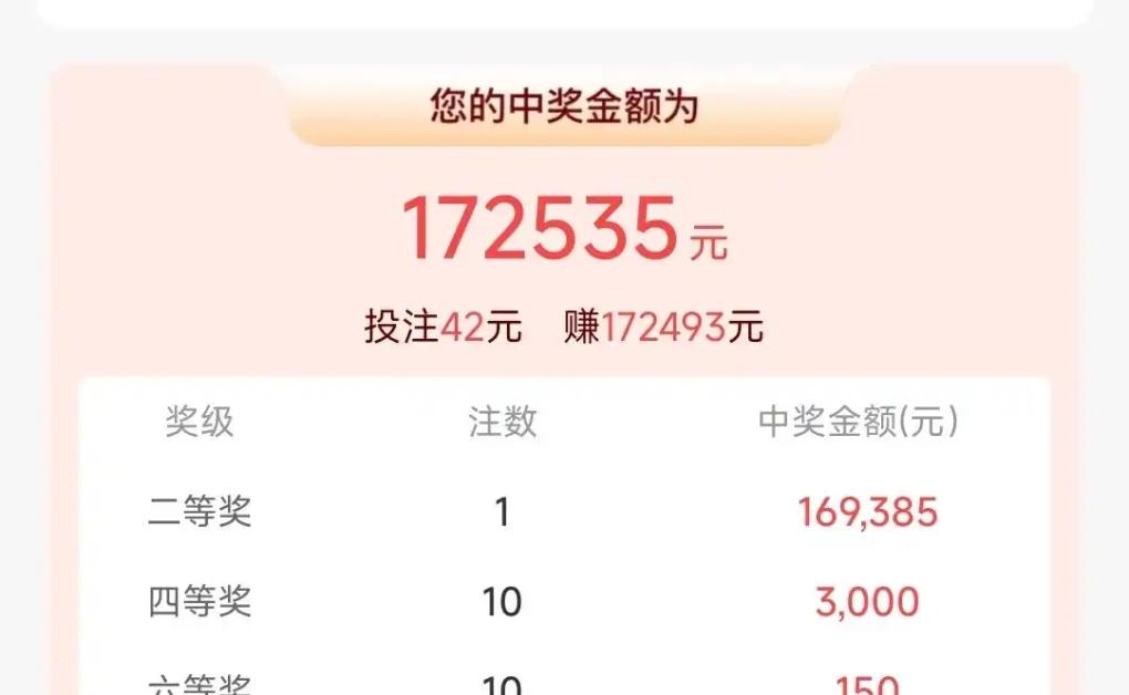 无独有偶,云南一位彩民凭借42元小额复式票,稳稳斩获17万二等奖,虽与头奖擦肩而过,也收获了不俗惊喜。