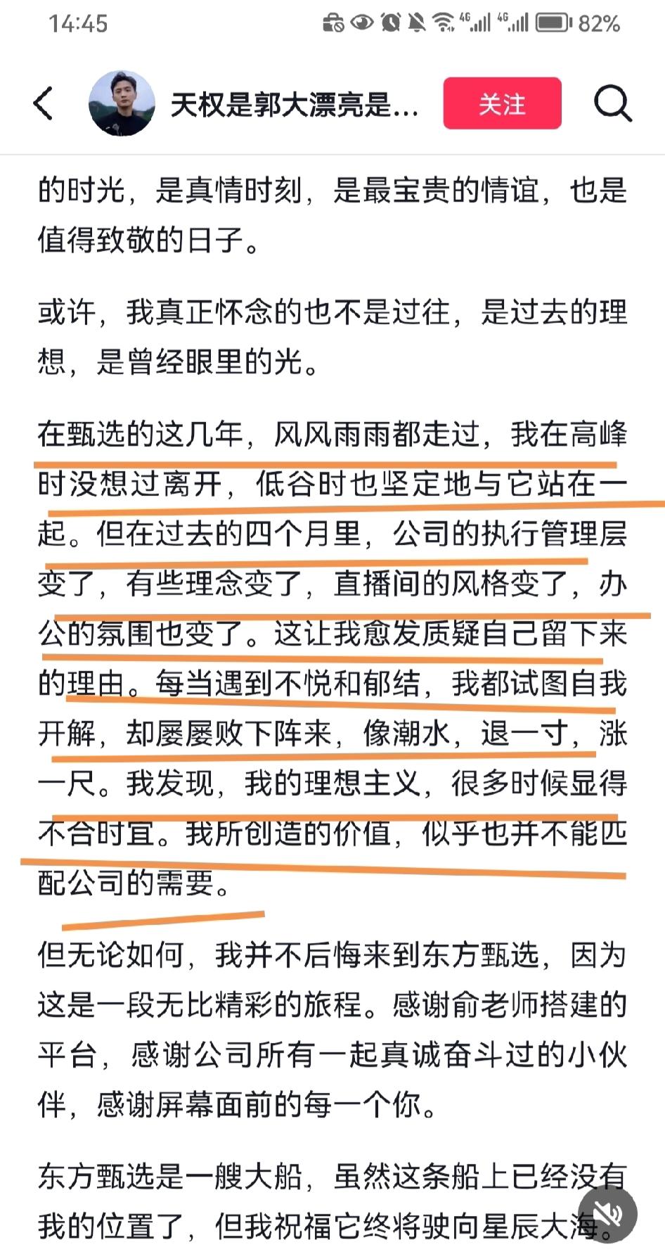 因为,他们提到的离职原因几乎都是相同的:公司管理理念改变、直播风格改变、上班氛围改变,以及都产生了不同程度的焦虑感。