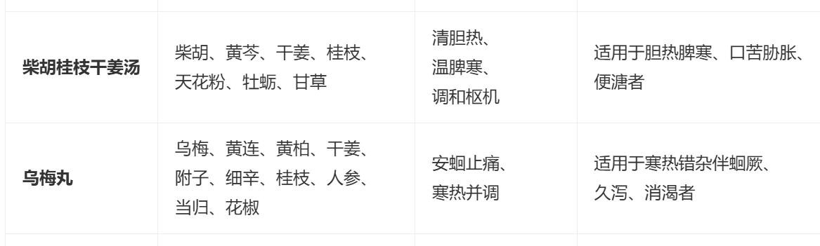治疗“胸热腹寒”即治疗“上热下寒”,首选方剂如下:(见表)