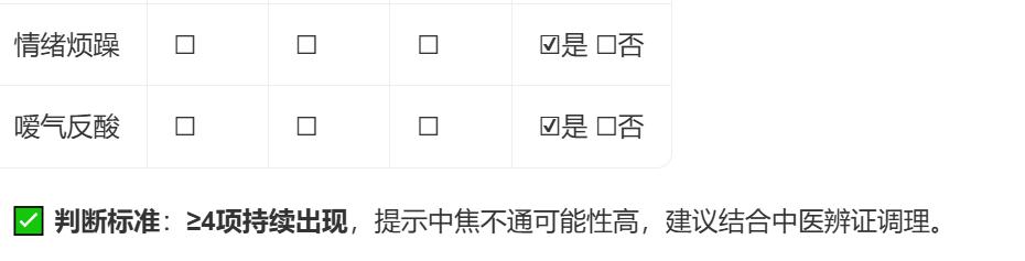 ✅ 自测口诀:“吃一点就胀,吃多了更胀,不吃又饿,吃了又不想吃”