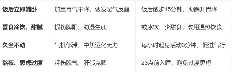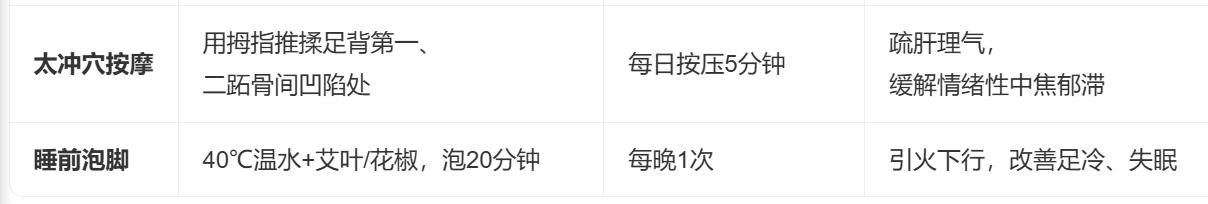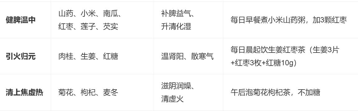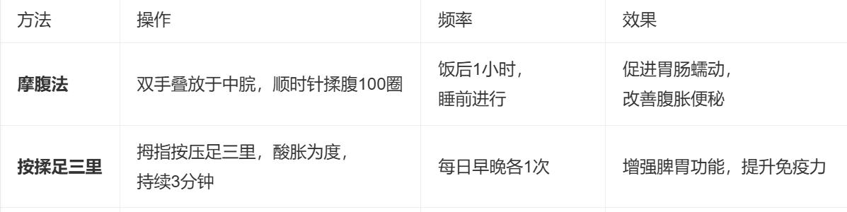 二、辅助调理:日常可操作的“中焦通法”(见表)