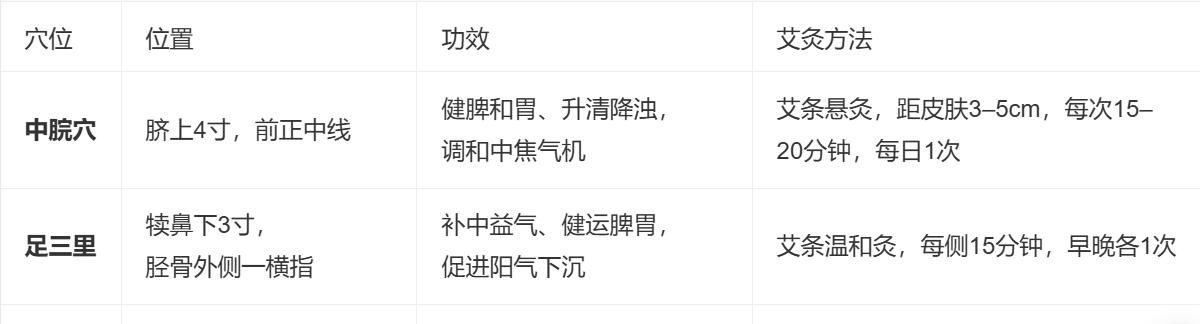 ✅ 操作要点: 艾灸时以局部温热、无灼痛为度; 饭后1小时内不宜艾灸; 阴虚火旺(口干舌燥、舌红少苔)者慎用,可改用按摩; 孕妇禁灸关元、神阙。