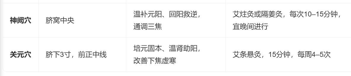 1. 艾灸温通:温阳散寒,引火归元