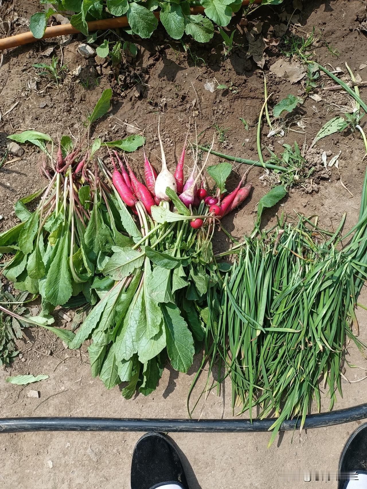 回家歇了一会儿,我又去菜园拔菜,今天又是拔了水萝卜,掰了生菜叶子。