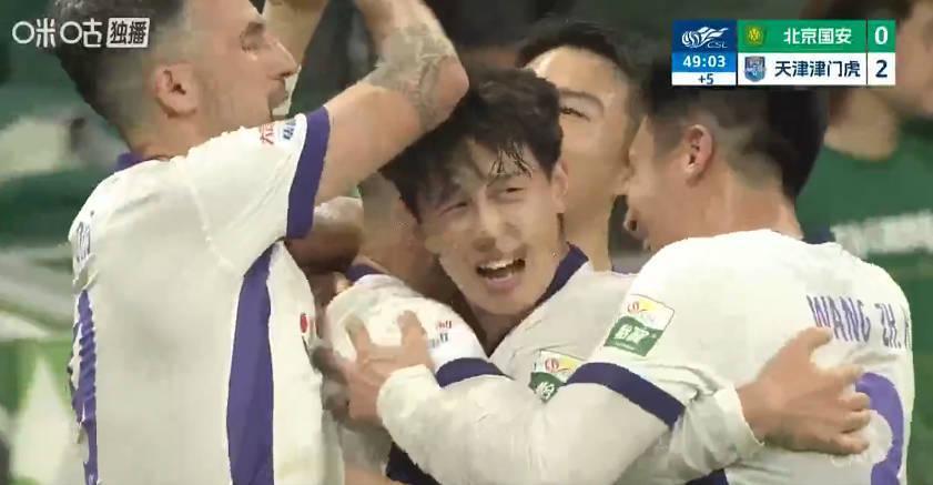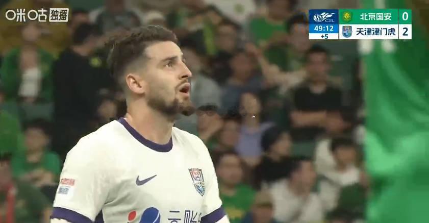 北京国安vs天津津门虎 国安上半场尾声丢的这第二个球,天津外援哈达斯打进的这