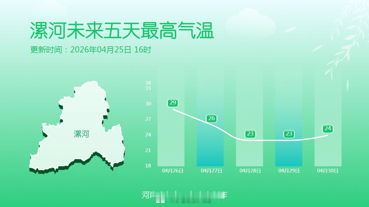 河南天气剧透十八地市未来五天最高气温 明天升温继续,预计多地最高气温28-30度,不过随着冷空气和降水影响,27日起气温逐渐下滑,注意关注气温变化,及时增减衣物 (河南气象)信阳生活 信阳