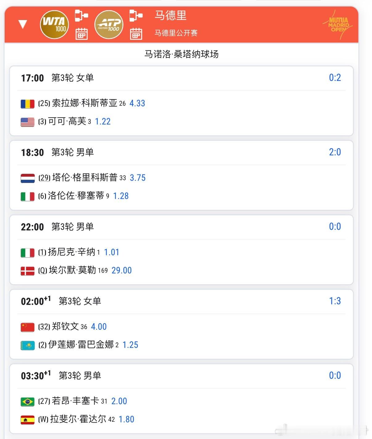 🟠WTA1000马德里女单第三轮焦点战🇨🇳郑钦文vs🇰🇿莱巴金娜🔥交手记录1-3