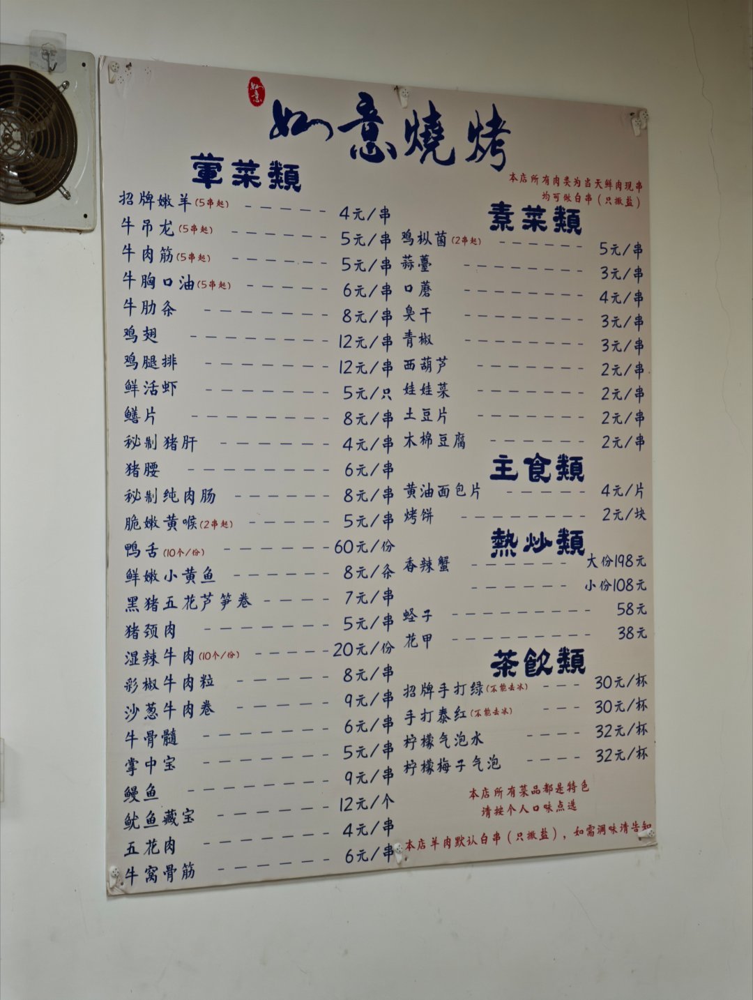 每天中午采购下午备菜晚上10点11点就差不多卖完了 南京·如意烧烤南京首店