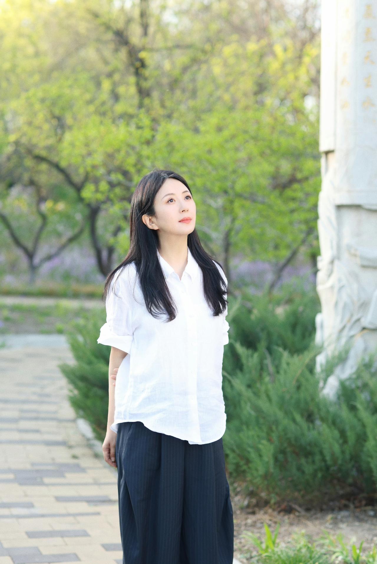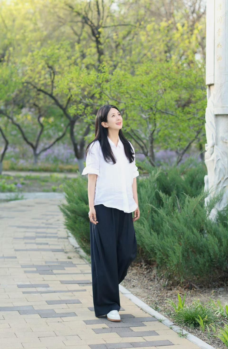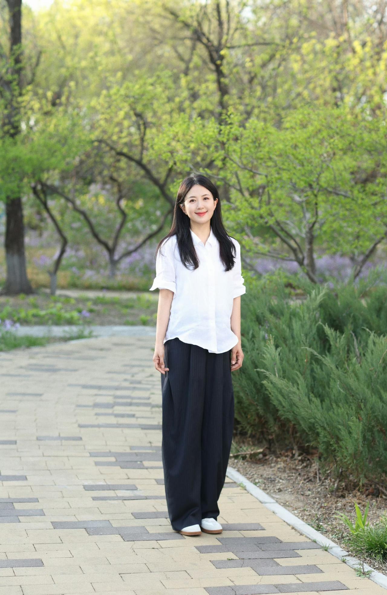 春日生活打卡季一身简单白衬衫,漫步在满是绿意的林间小径。阳光温柔洒落,草木清香漫
