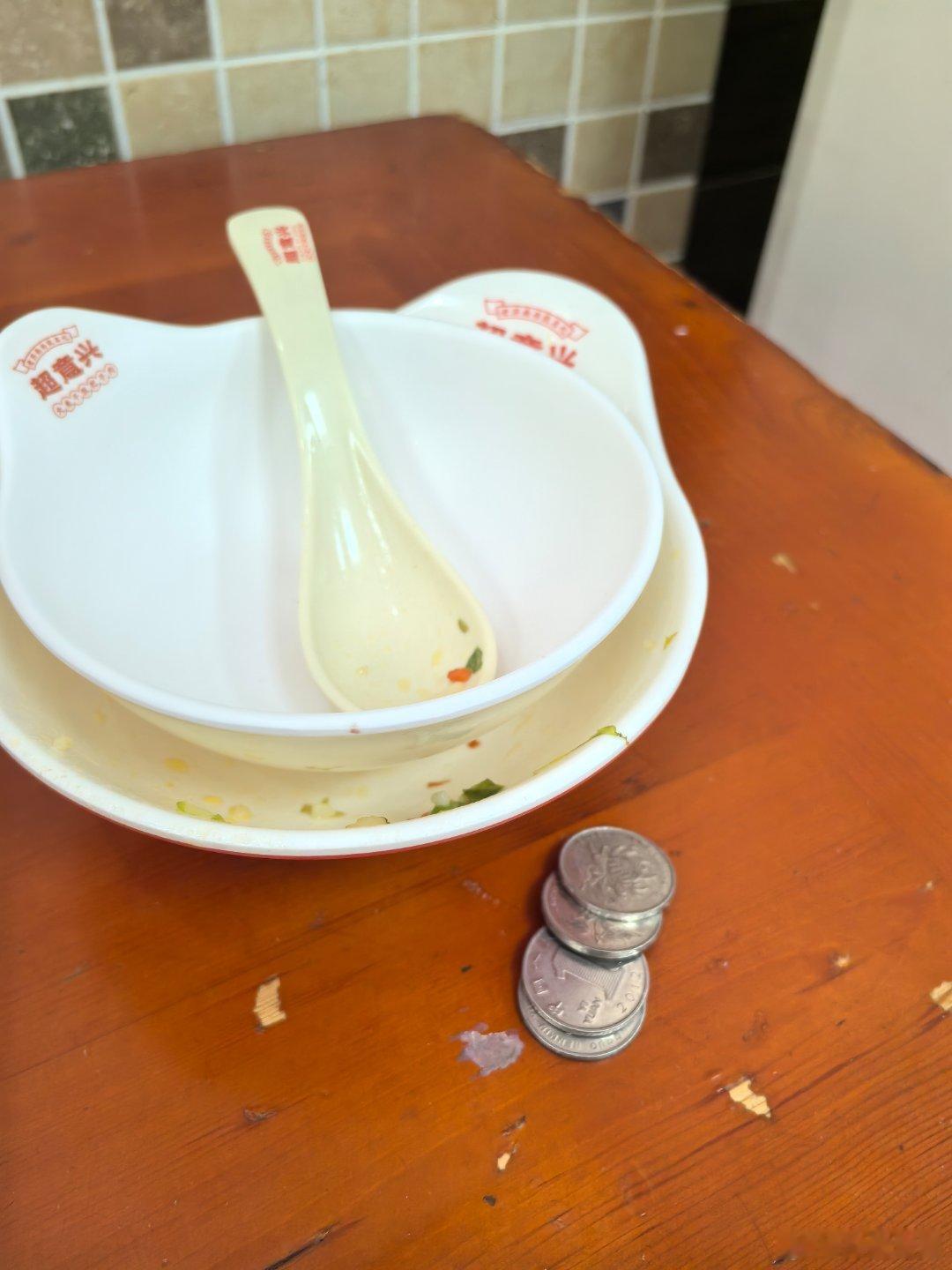 每次来超意兴吃饭,都像是在薅社会主义羊毛!6块钱包含一根油条、一个蛋、一大碗八宝粥、一盘小咸菜。刚坐下,把别人吃完没收拾的碗撇一边,碗底下竟然跳出四个钢镚儿!这是谁变魔术忘了拿走啊?